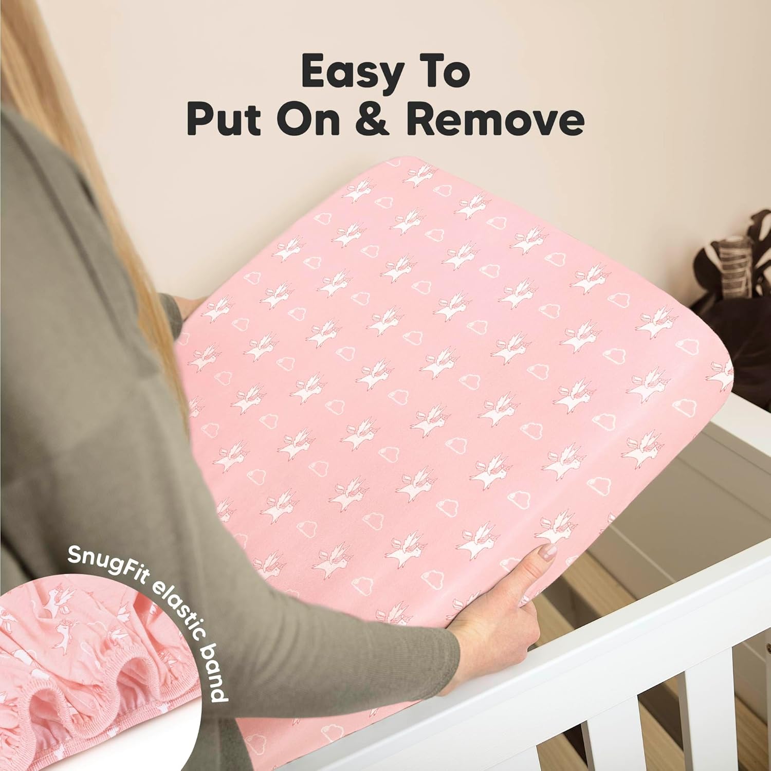 - Easy To Put On - Our baby sheets for crib use SnugFit Tech, a smart fabric knit that stretches effortlessly for quick fitting and removal of the toddler bed sheets. No more struggling with rigid fabric!