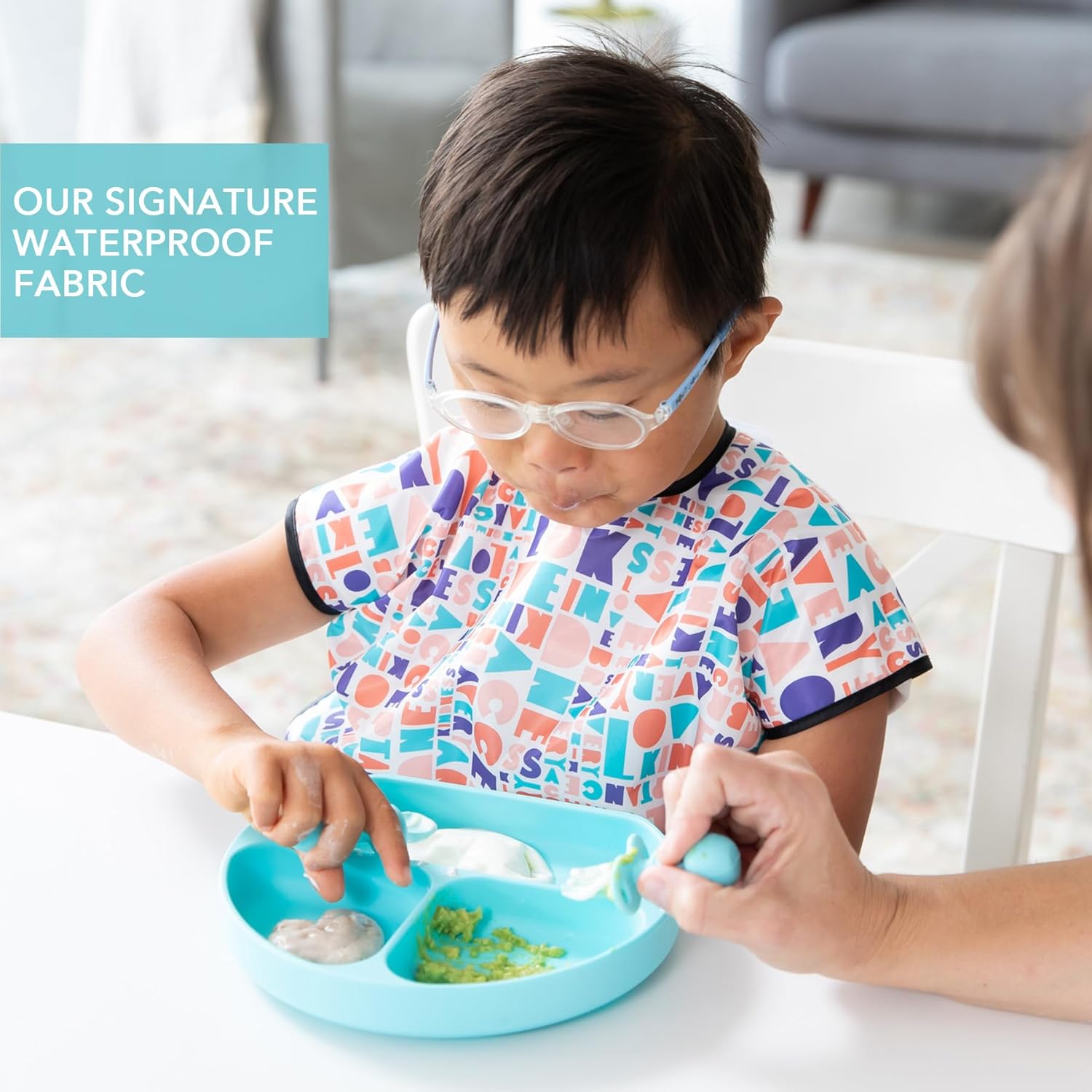 - SOFT YET STRONG – Bumkins signature waterproof fabric is durable and stands up to messes, yet it’s lightweight and comfortable for your little one; wash and reuse over and over again