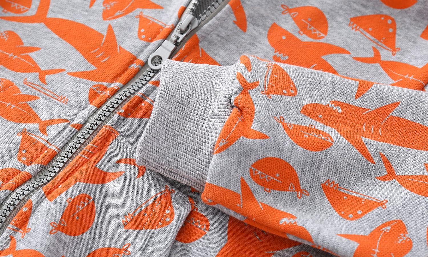 - Design: This full-zip long-sleeved hooded sweatshirt features classic and concise cuts with cute and fun colorful dinosaur prints. Ribbed cuffs and hem stretch for cozy fit, Windproof and warm.