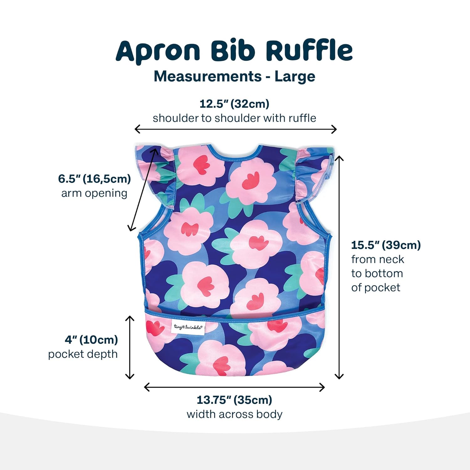 Tiny Twinkle Mess Proof Baby Bib - Waterproof & Lightweight Baby-Led Weaning Apron | 100% Recycled Polyester, Easy Clean & Machine Washable (Floral Blue, Small 6-24 Months)