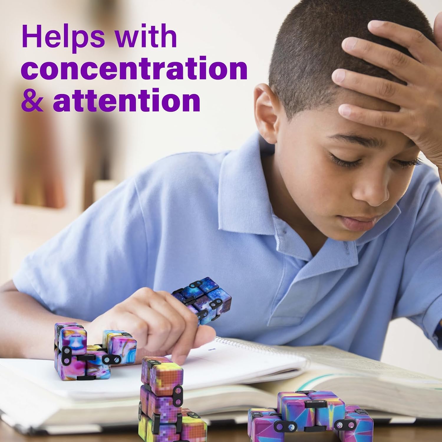 Infinitycube Fidget Toy Stress Relieving Fidgeting Game for Kids and Adults,Cute Pocket-sized Unique Gadget for Anxiety Relief and Kill Time (4, Colorful)