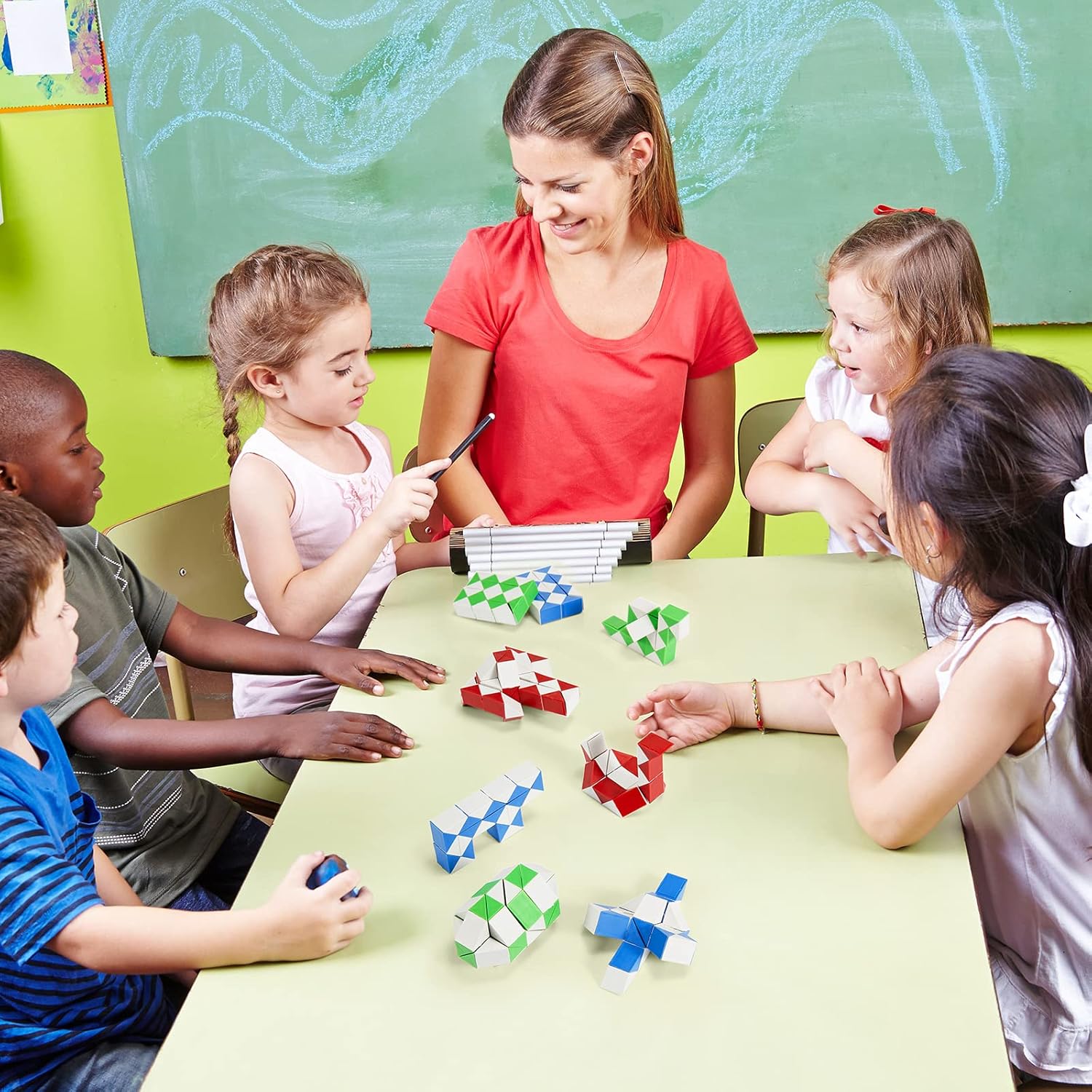 60 Pack Sensory Fidget Snake Cube 24 Blocks Twist Puzzles Toys Mini Snake Fidget Toy for Kids Teens Party Bag Fillers Party Favors