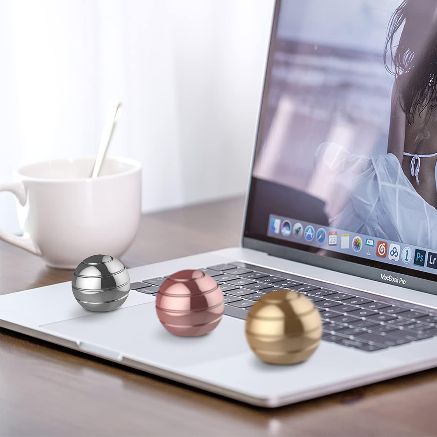 - 【HIGH QUALITY MATERIALS】 Made of aerospace grade aluminum it has a helix-shaped groove milled alongside the whole surface.Designed to spin on any desk or flat surface. the spinner ball will be smooth and heavy. With a high-quality bearings inside, which will make it rotate longer and quieter. The bottom is soft plastic, can bear the power of rotation better, make the whole ball quieter and last longer