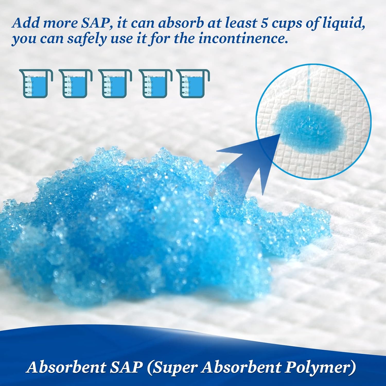 - Large Size and Super Absorbency:These disposable bed pads size in 23"x36"(60x90cm).Thicken pee pads with gelling polymer can lock in liquid quickly and keep it dry. 50/100/150 count are available to meet different needs