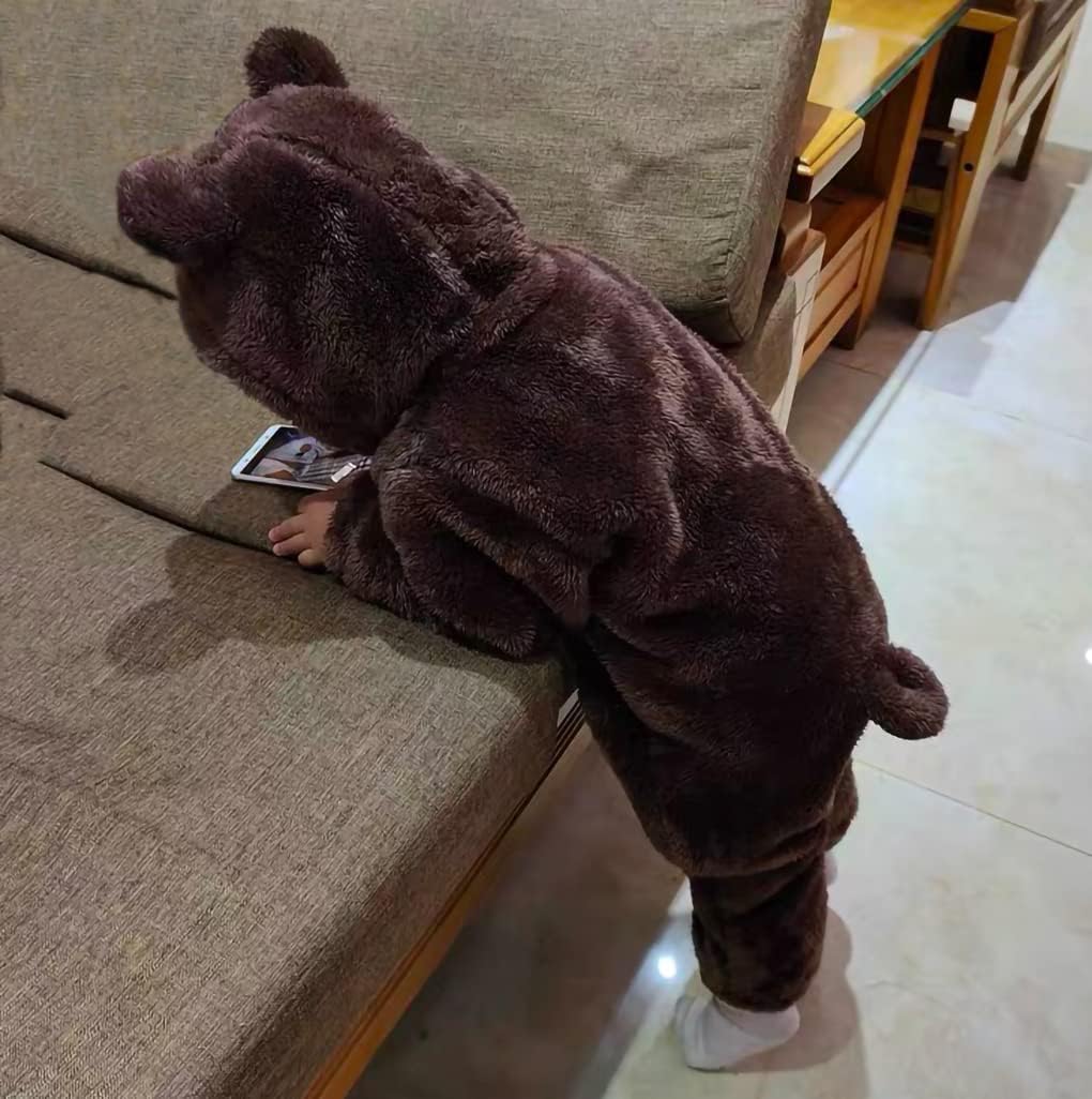 - 【Design】:Fleece cotton lined hooded care for baby's head,the design of bear ears and bear tail makes your baby look so cute,Long zipper closure convenient for pull on or take off,Zipper top is edge of hood,won't hurt baby's neck,Elastic cuffs fit the wrist,warm and comfortable.
