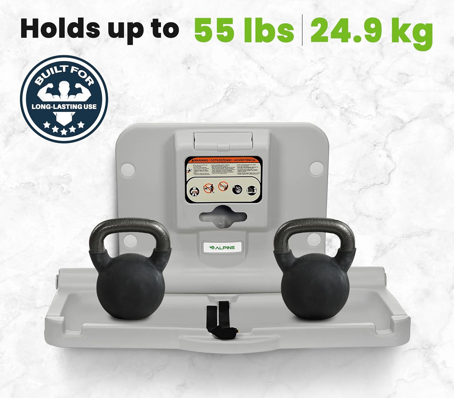Alpine Wall Mounted Baby Changing Station - Horizontal Baby Changing Table Foldable Diaper Tables with Safety Strap for Commercial Bathroom, ADA Complaint (Hardware Included) White Gray