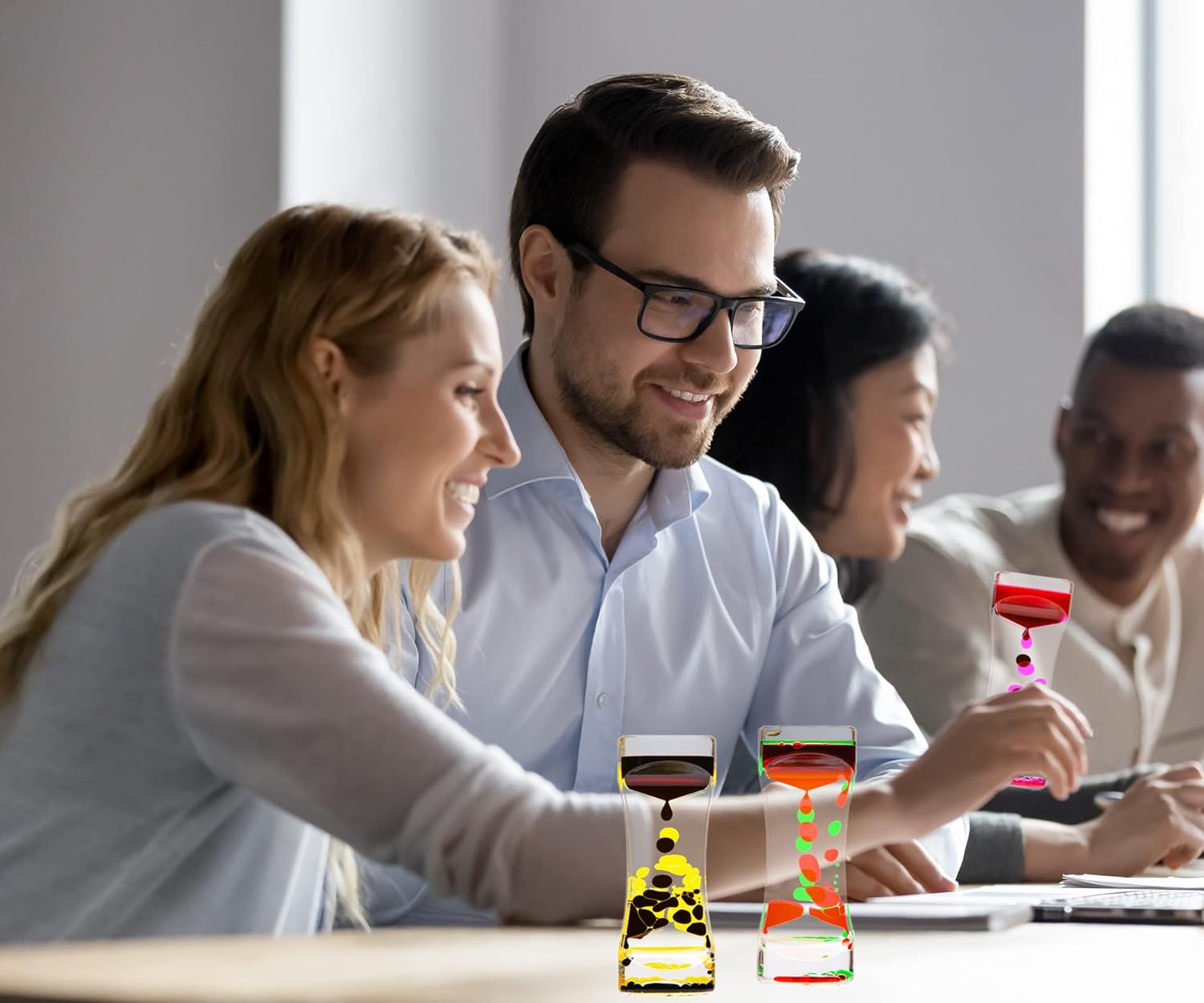 - COLORFUL LIQUID TIMERS: Each liquid motion bubbler timer contains two colors inside.Great for an office desk space,bedroom,or even as a reminder when brushing your teeth,the soothing colors remind you to slow down,relax,and enjoy each moment.Every order comes with 9 pack liquid motion timers,each with their own unique colors inside,giving you even more options for play!