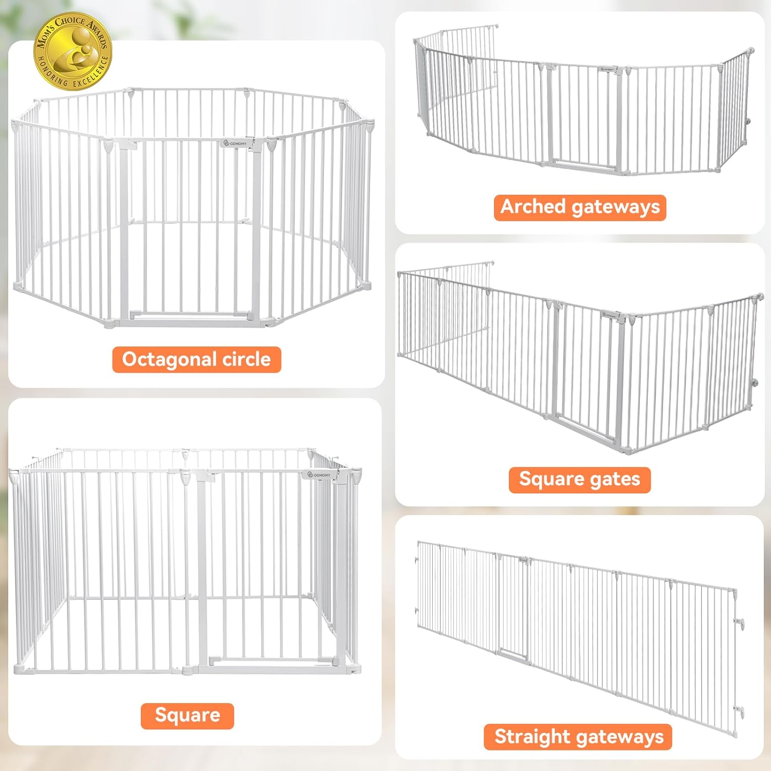 COMOMY 198" Baby Gate Extra Wide, Dog Gate Pet Gate for House Stairs Doorways Fireplace, Adjustable 3 in 1 Play Yard Child Safety Gate, Auto Close, Hardware Mounted (30" Tall, White)