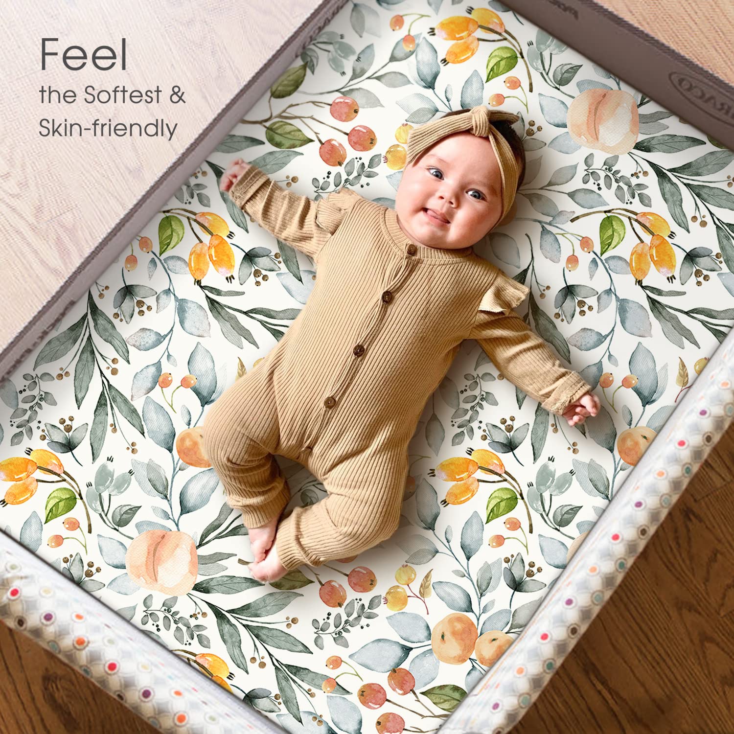 - Apple It Within Seconds: Thanks to the elastic bottom, our pack n play sheets come in a classic,watercolor flowers and fruits print that will put the finishing touches to any bedding. Make sure to give your darling a serene and calm bed to rest in.