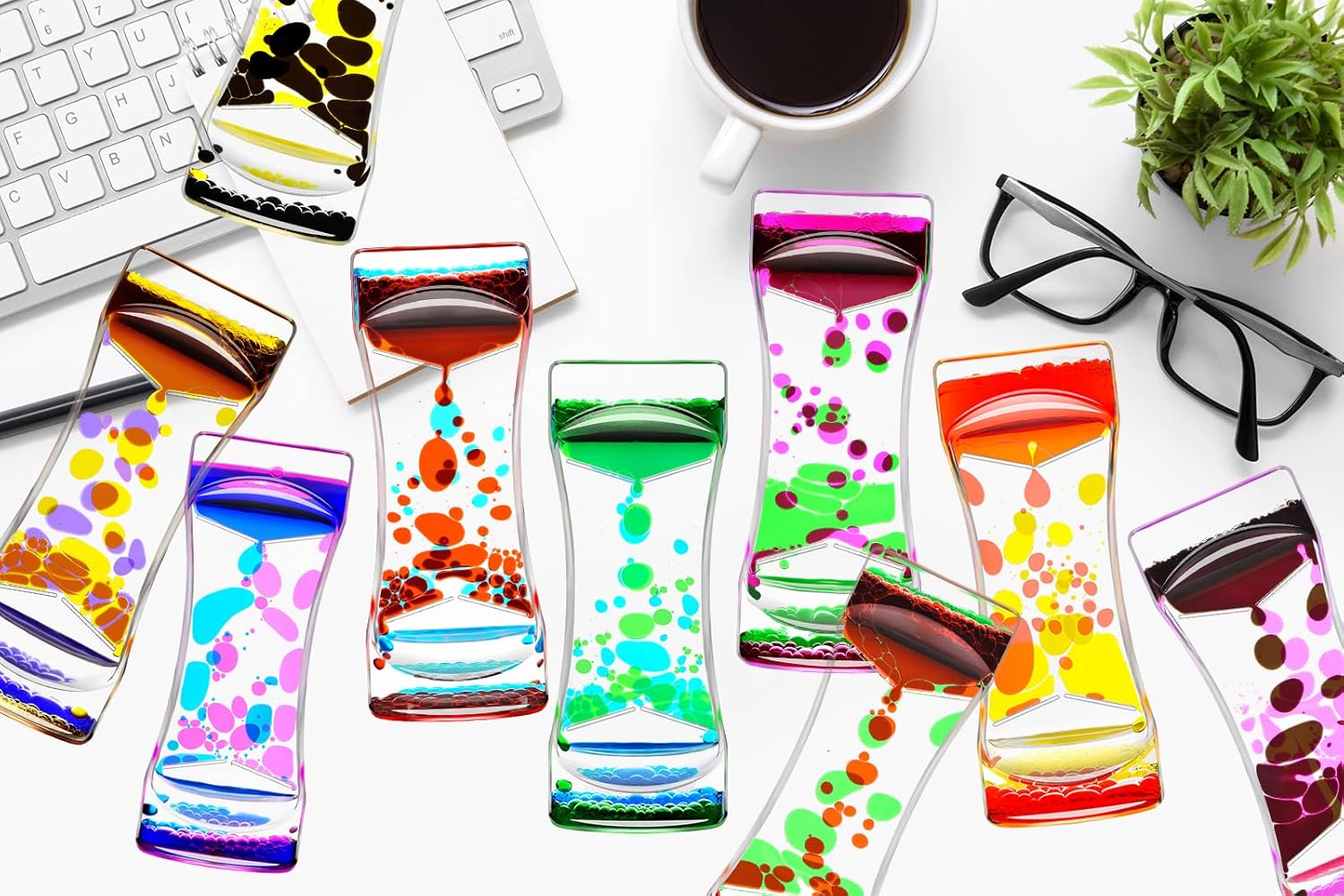 - 4.Great Gift Ideas for Every One: We are giving the best holiday gift this season that you can’t resist. This liquid timer is the perfect fidget autism toy, desk corner toy, and even play as a classroom reward.- DRIP OIL MOTION BUBBLE TIMER! Size:13.7 x 5.5 x 3cm/ 5.39 x 2.16 x 1.18 inch (LxWxH)