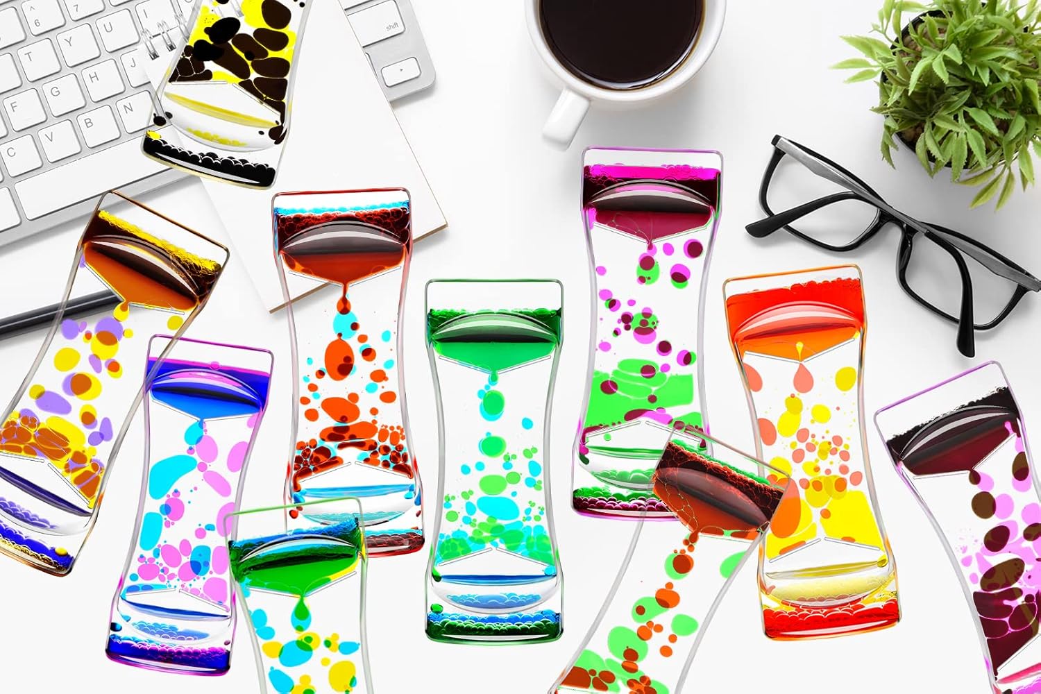 - 4.Great Gift Ideas for Every One: We are giving the best holiday gift this season that you can’t resist. This liquid timer is the perfect fidget autism toy, desk corner toy, and even play as a classroom reward.- DRIP OIL MOTION BUBBLE TIMER! Size:13.7 x 5.5 x 3cm/ 5.39 x 2.16 x 1.18 inch (LxWxH)