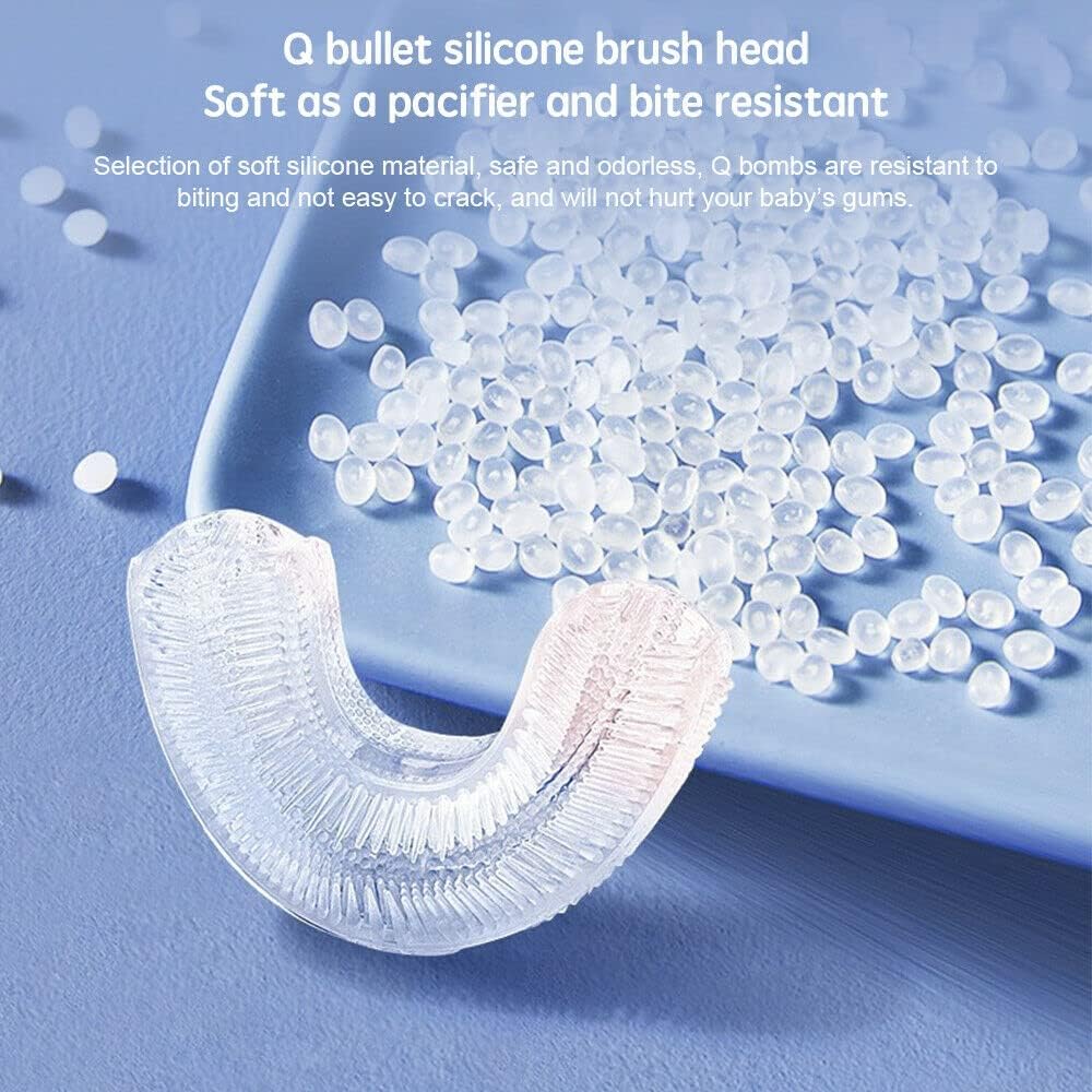 - 🦷【Unique U-Shaped Design】: Ergonomic U-shaped brush head, suitable for the shape and mechanics of children's teeth structure. Soft pacifier grade silicone, soft brim around the teeth 360 degrees oral, providing a comfortable feeling of brushing, the original V-shaped cleaning path, effective deep cleaning, will not harm the gums, protect children's enamel.Clean to every place。