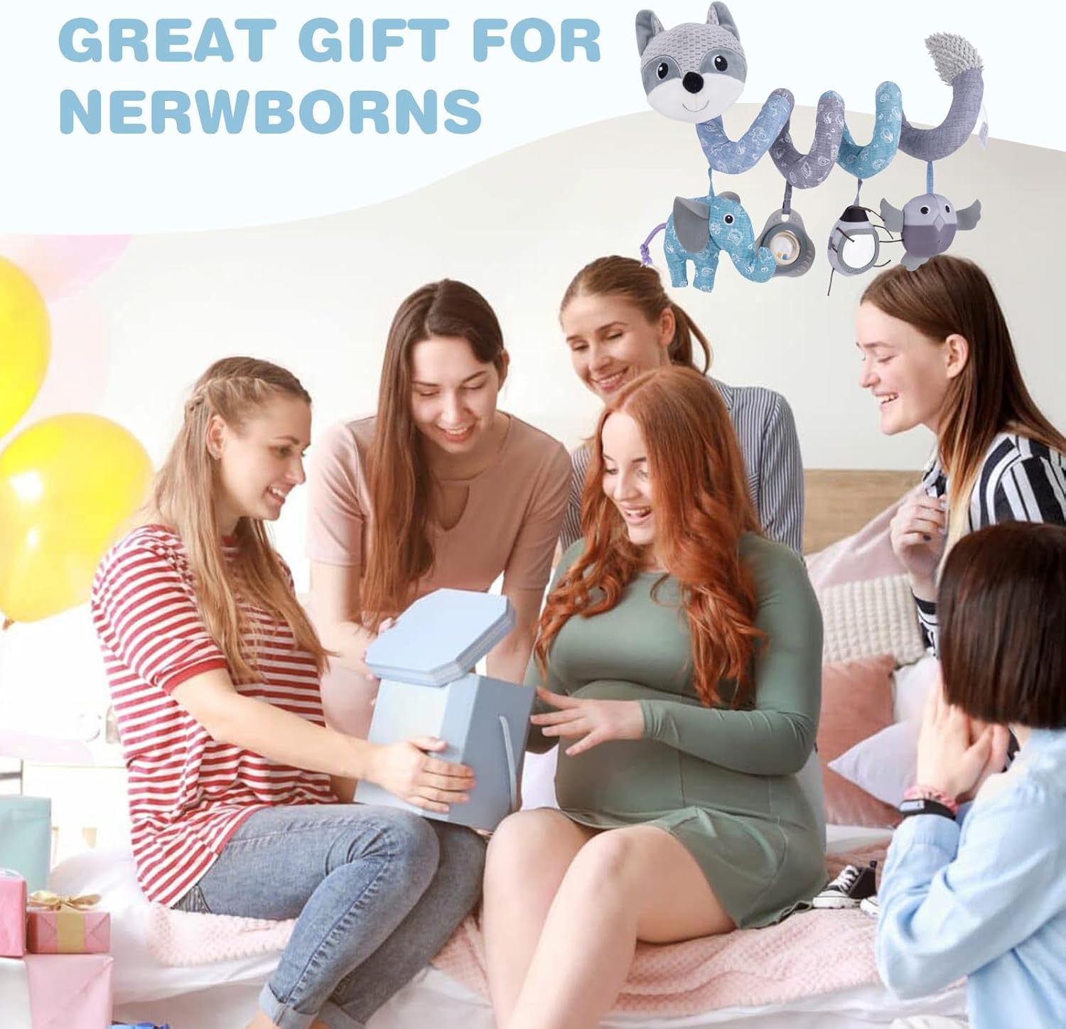 Jollybaby Baby Car Seat Stroller Toys, Plush Activity Hanging Spiral Activity Pram Crib with Music Box, Rattles, Squeaker for Babies Infant Boys Girls(Grey Fox)
