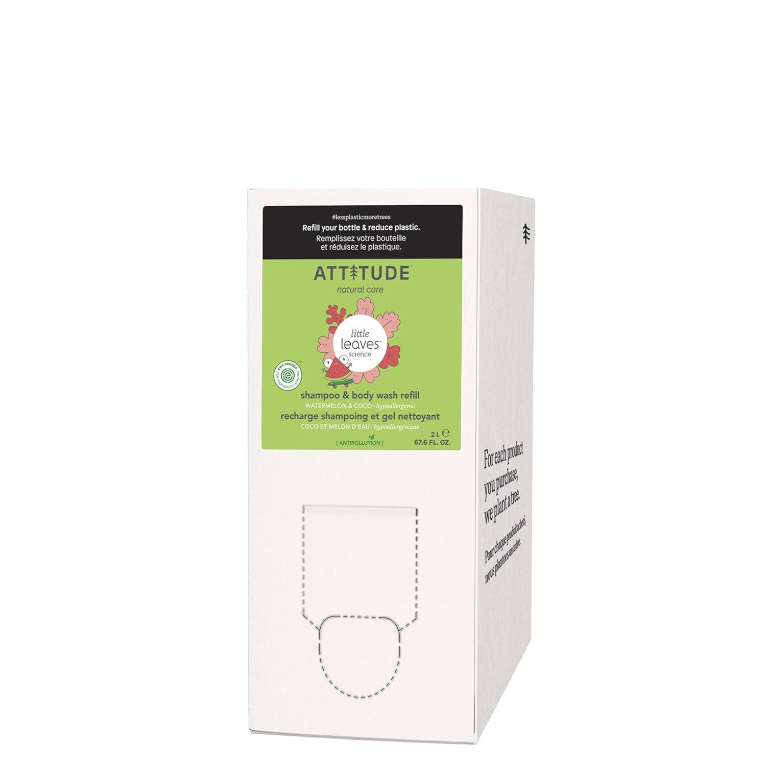 ATTITUDE Shampoo and Body Wash for Kids, EWG Verified Hair and Body Cleanser, Dermatologically Tested Soap, Plant and Mineral Based Bath Products, Vegan, Bulk Refill, Watermelon and Coco, 67.6 Fl Oz