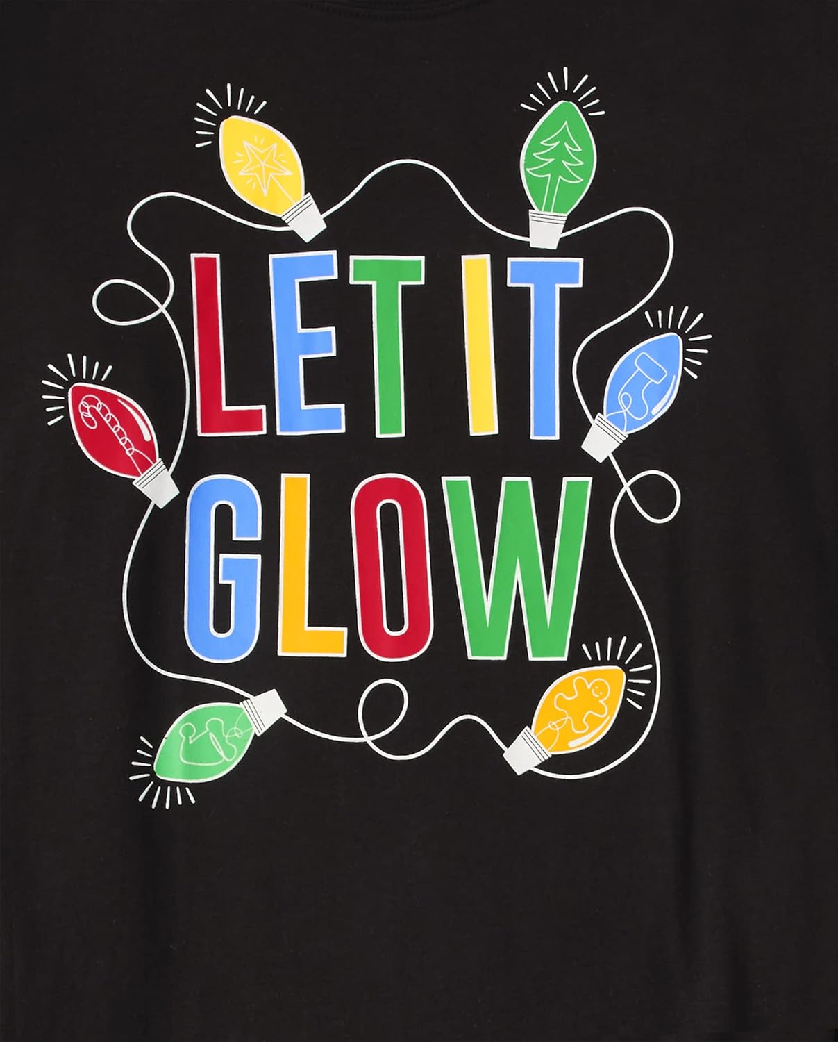 - PAJAMA TOP — Features long sleeves, rib-knit crew neck and sleeve cuffs and 'Let It Glow' with lights graphic design at front glows in the dark. For best glow effect, expose to light before wearing