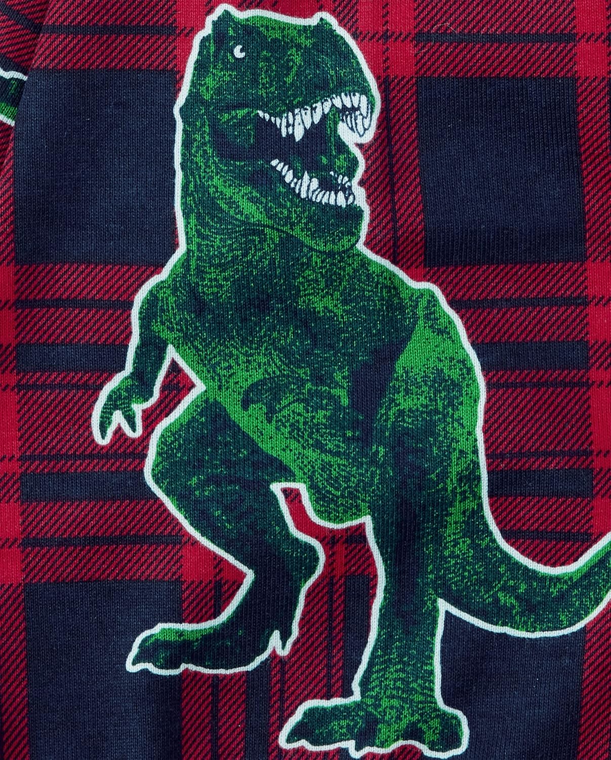 - PAJAMA TOP — Features long sleeves, rib-knit crew neck and sleeve cuffs and 'Christmas Tree-Rex' with dino and tree graphic design at front glows in the dark. For best glow effect, expose to light before wearing