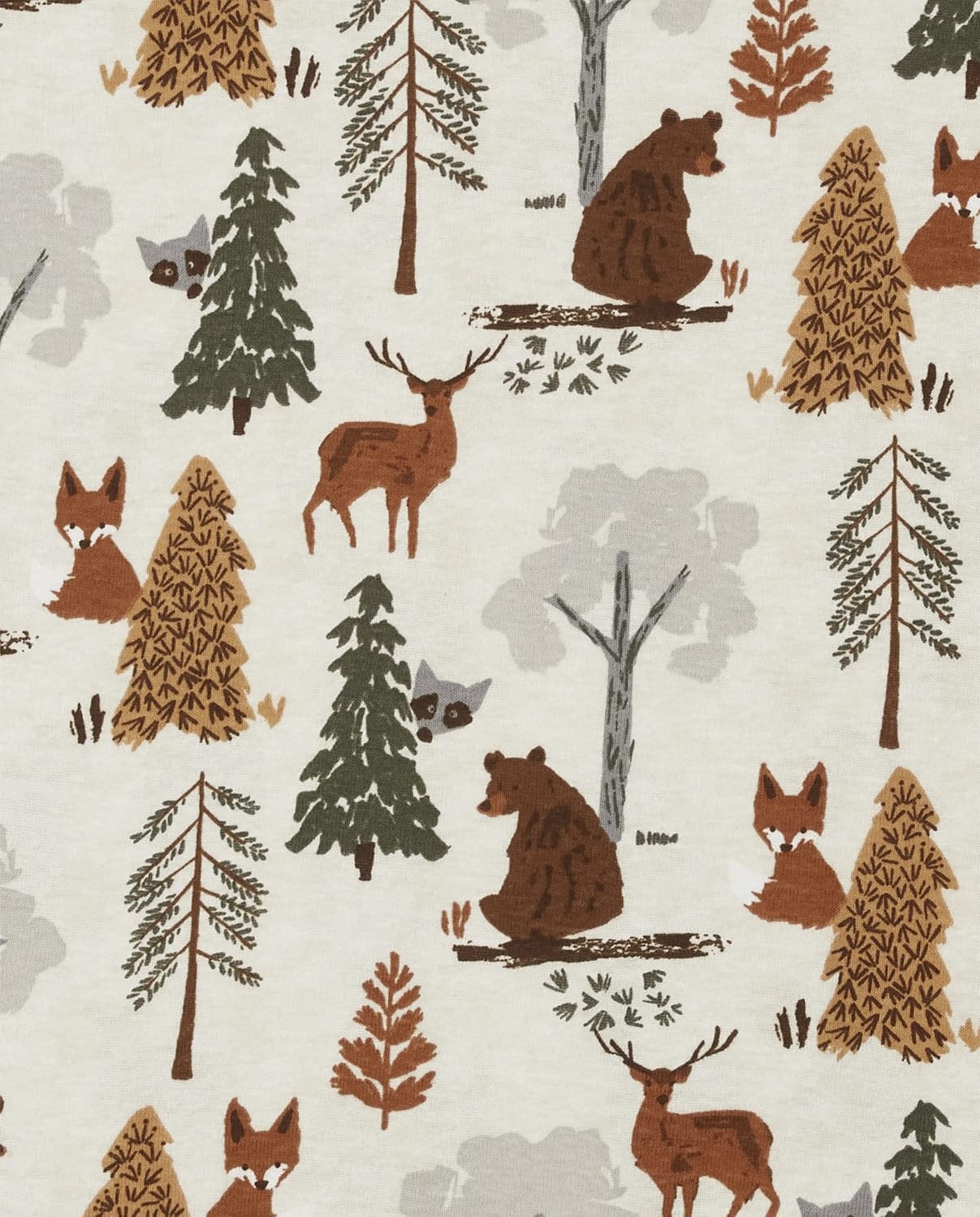 - PAJAMA TOP — Features long sleeves, rib-knit crew neck and sleeve cuffs and allover forest and animal print