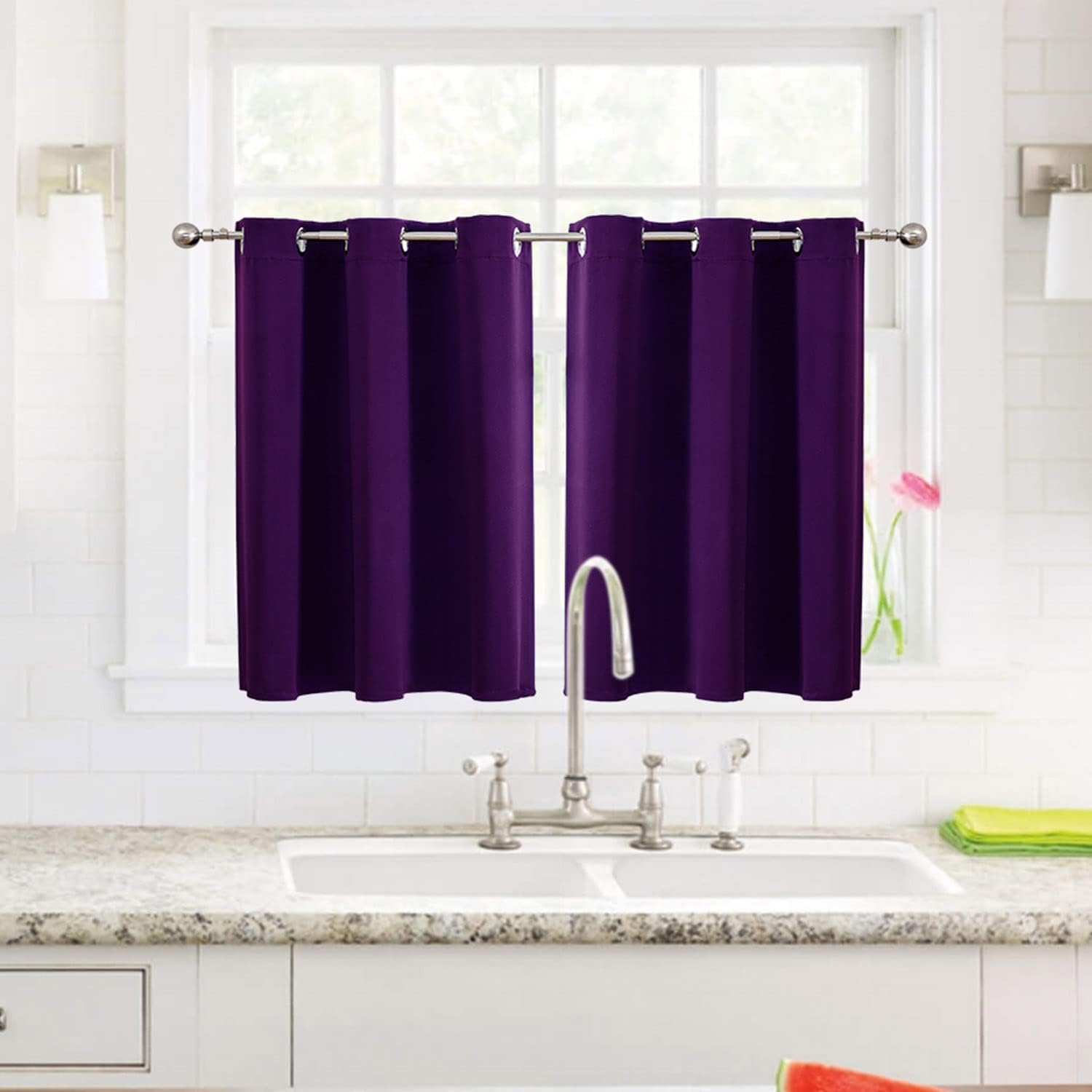 ChrisDowa Small Window Curtains for Kitchen and Bedroom - Grommet Short Thermal Insulated Room Darkening Curtains (2 Panels, Royal Purple, 42 x 36 Inch)