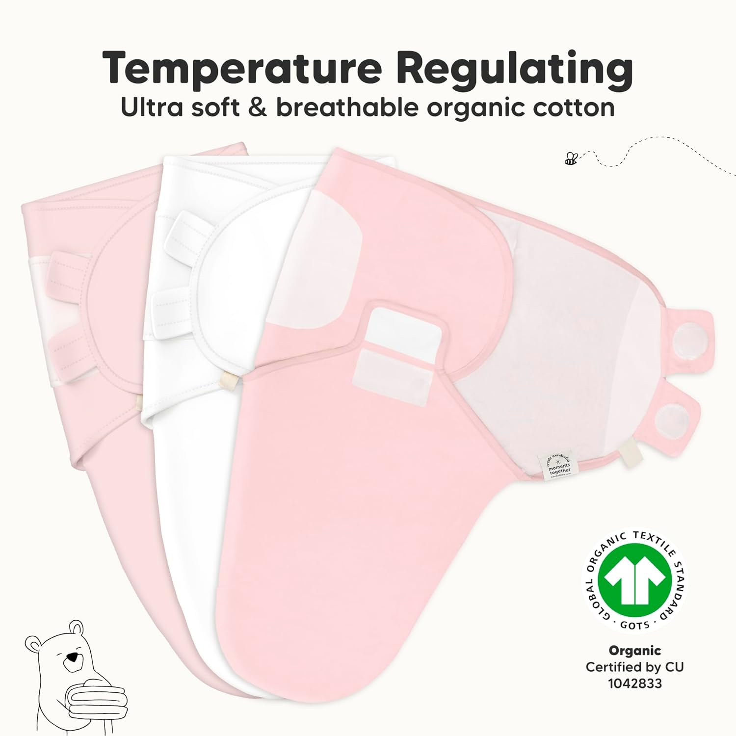 - Breathable & Temperature-regulating - Our Soothe Swaddle for newborns is made with ultra-soft Organic Cotton (GOTS Certified by CU 1042833), it is lightweight and highly breathable which makes it a highly-raved newborn swaddle sack for all seasons.