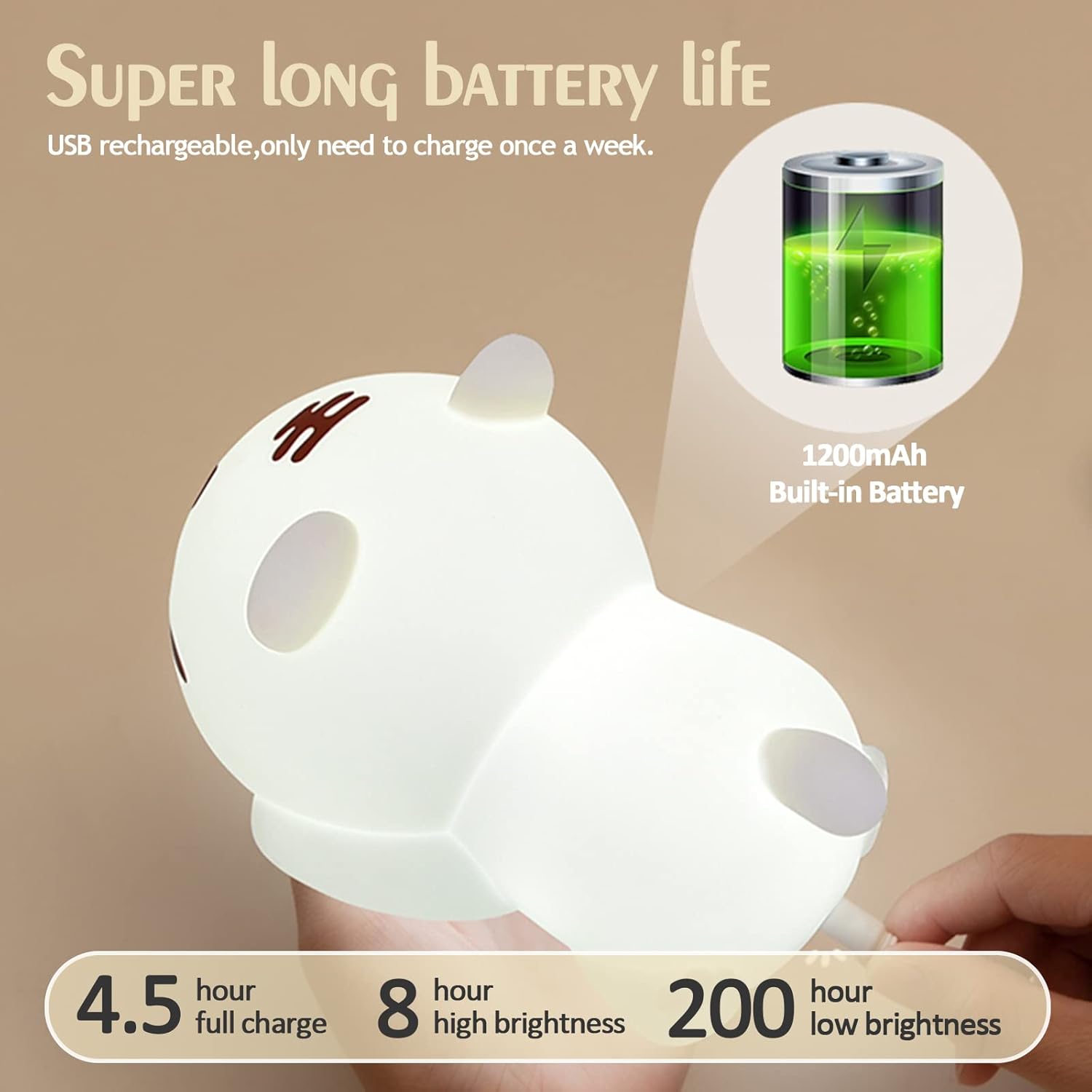 - ๐ 1200mAh Rechargeable Battery: 100 hours with sleeping light, long battery life, small size and big energy, just needs to be charged with an adapter (5V-1A) or usb device for 4.5 hours but can work for continuous lighting over 8 hours in high brightness or 200 hours in low brightness. no problem to open all night, sleep peacefully with power saving.
