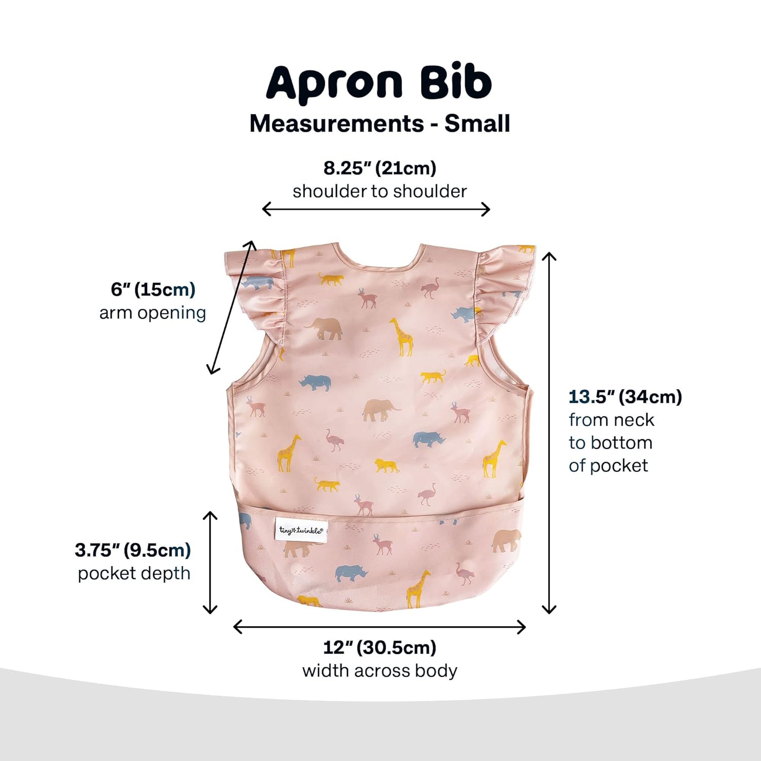 Tiny Twinkle Mess Proof Baby Bib - Waterproof & Lightweight Baby-Led Weaning Apron | 100% Recycled Polyester, Easy Clean & Machine Washable (Petite Safari, Small 6-24 Months)