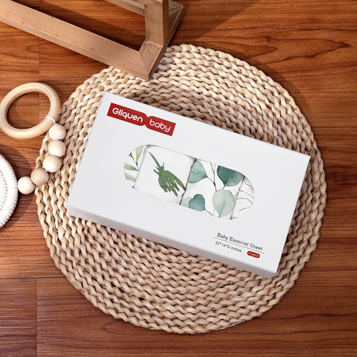 Gllquen Baby Bassinet Sheets 4 Pack, Breathable Cozy Fitted Mattress Sheet, Elastic Travel Crib Fashionable Floral Pattern, Standard Cradle Safe Sheets for Baby Boys Girls 32"x16"(Greenery)