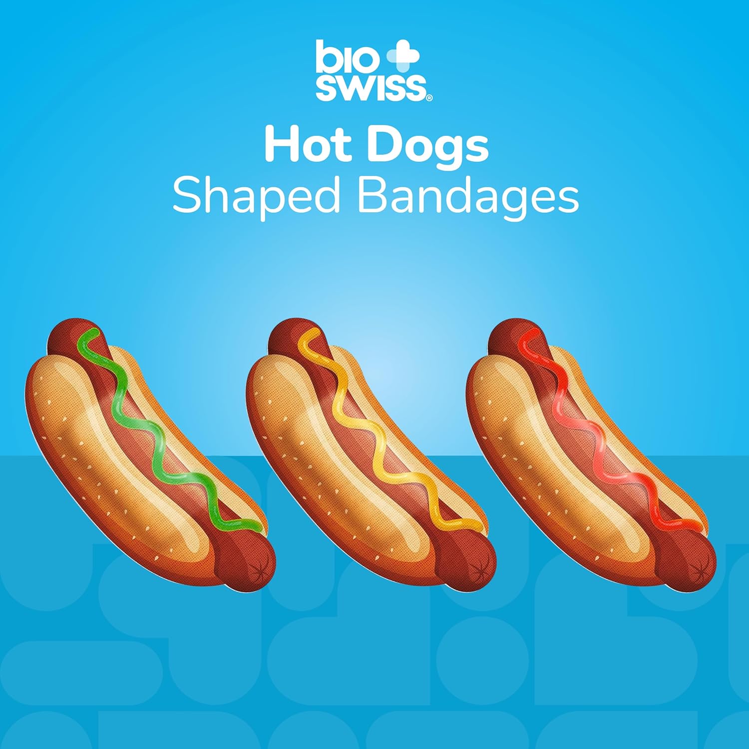 BioSwiss Bandages, Hot Dog Shaped Self Adhesive Bandage, Latex Free Sterile Wound Care, Fun First Aid Kit Supplies for Kids, 24 Count