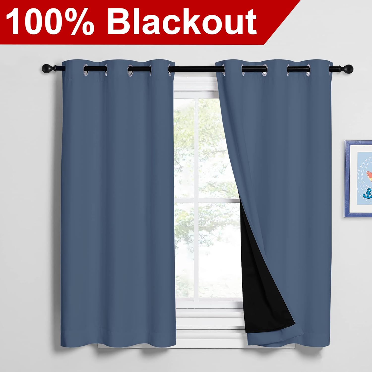 NICETOWN Stone Blue 100% Blackout Curtains 2 Panels Set Burg, Thermal Insulated Full Blackout 2-Layer Lined Drapes, Energy Efficiency Window Draperies for Boy's Room (42-inch W by 54-inch L)