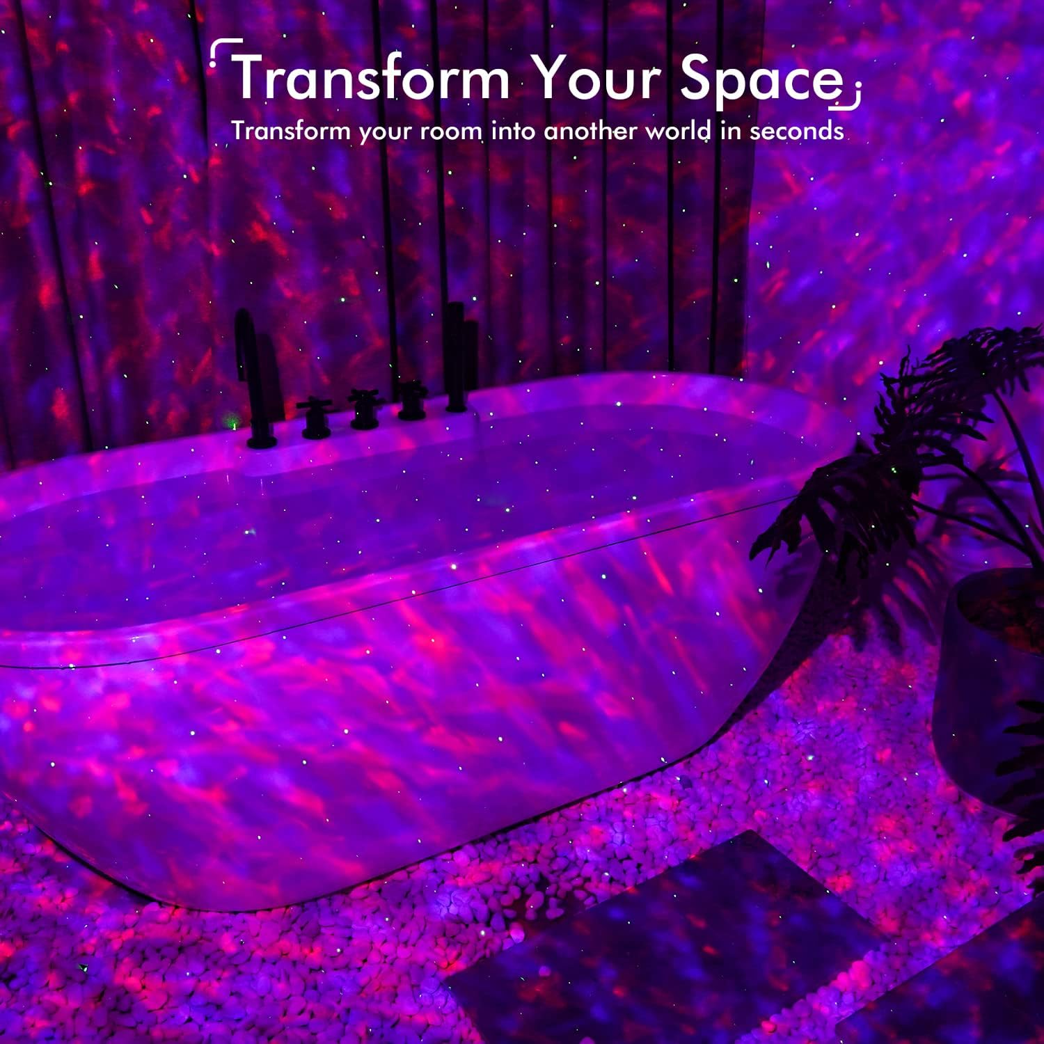 - Turn It On... Transformations Come - Our most advanced star and projection technology. Rossetta galaxy projector combines an ocean wave projector, night light, desk lamp, white noise machine, and bluetooth speakers all in one device, providing up to 35 x 35 ft of wide coverage - 80% more area than previous models. Easy to use, one button turns your room into a galaxy, projecting fading in/out or still star lights, and memorizing nebula cloud around your space with soothing music for relaxation.