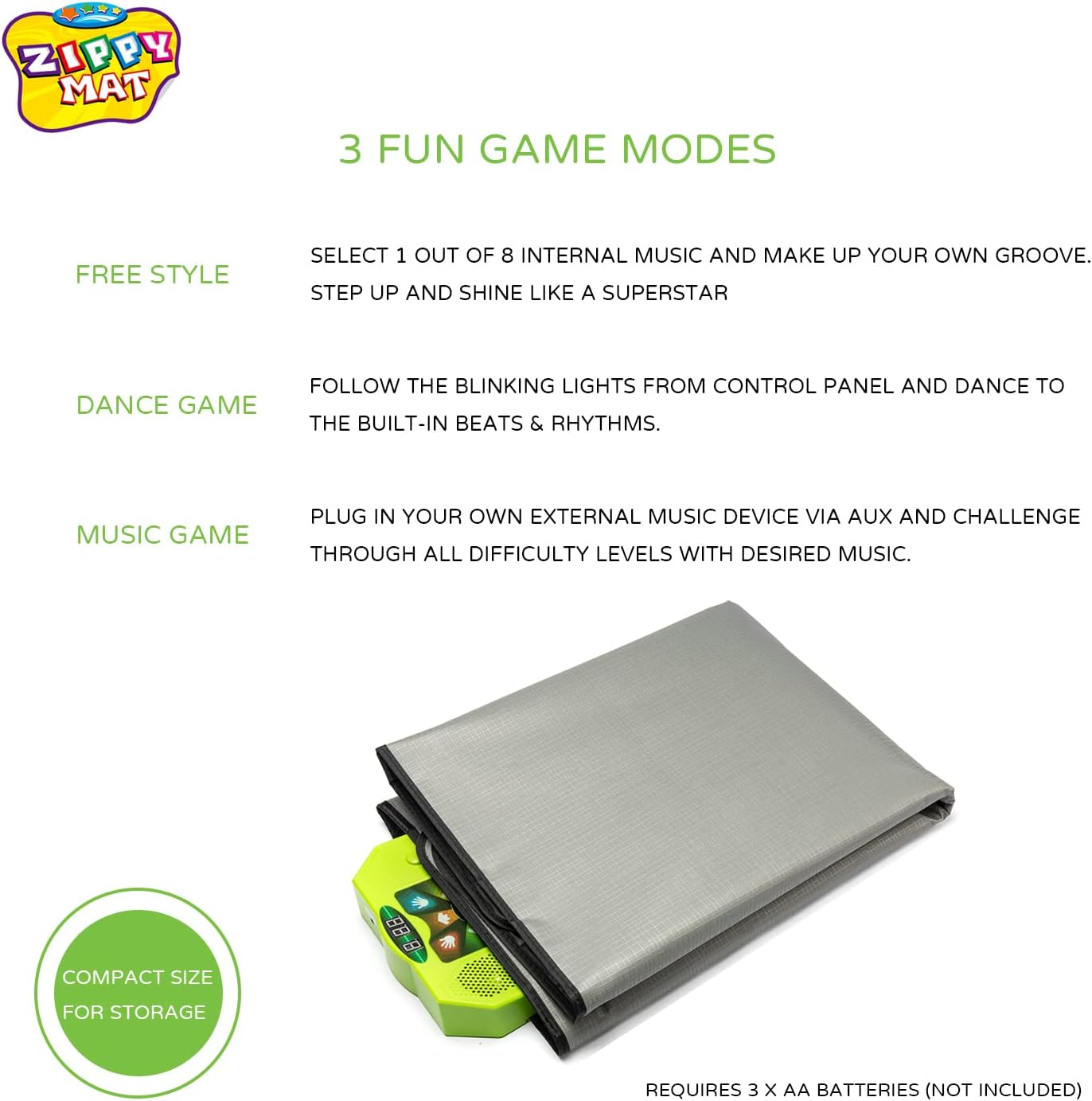 - 【SAFE and DURABLE】 Made of polythene material which is non-toxic and environmental friendly. Mat surface is soft and durable which can bear multiple jumps. Dirt and stain can be easily wiped off by using a cloth. Anti-slippery design ensures kids having fun safe and sound. Requires 3*AA batteries - Not included.