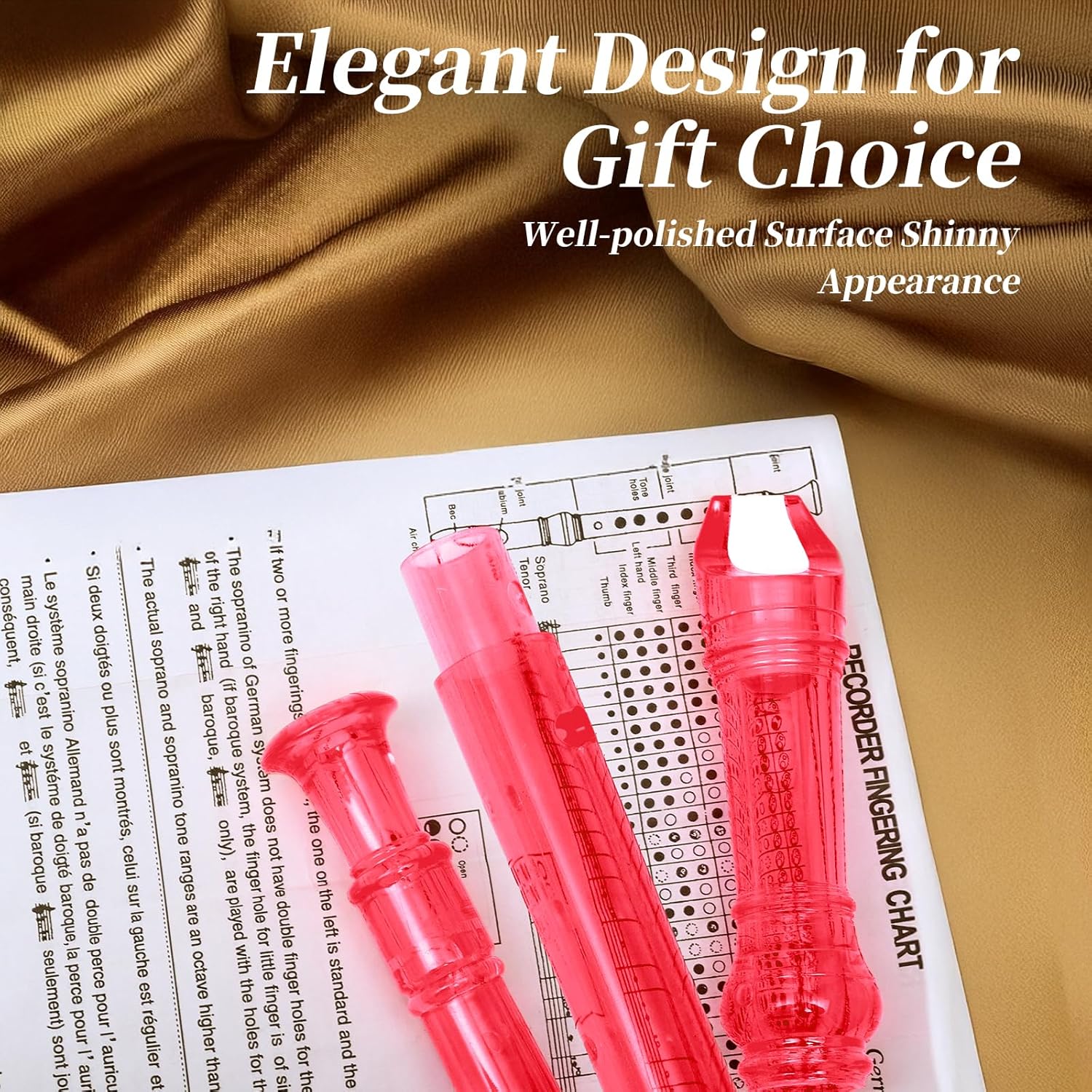 - ♫ Package Contents -- Exquisite packing bag,Soprano Recorder,Fingering Chart, Cleaning Rod, Small wipe.Ours recorder is packed in a storage bag,convenient to carry around it, such as music classes, camping trips, road trips, etc.