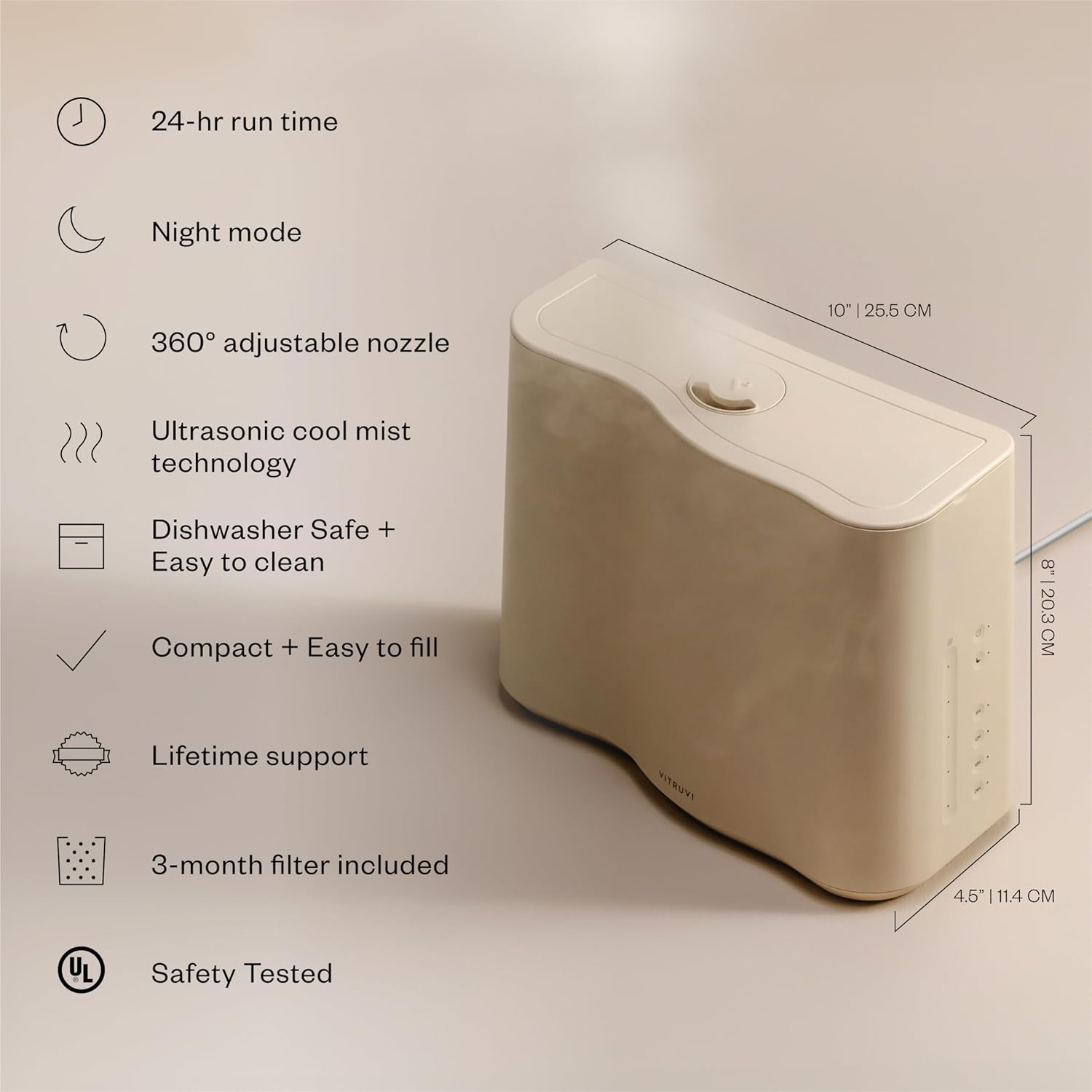 Vitruvi Cloud Humidifier for Bedroom | Large Humidifier Up to 600 sq ft | Cool Mist Humidifiers for Bedroom Quiet | Ultrasonic Humidifiers | 24 Hr Run Time - Oat