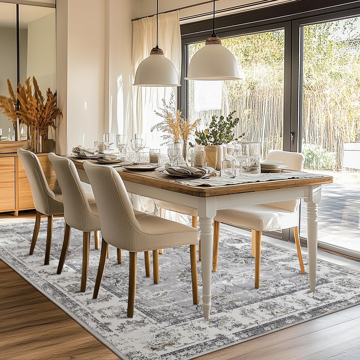 jinchan 8x10 Area Rugs for Living Room - Machine Washable Vintage Floral Distressed Design Stain Resistant Boho Carpet Low Pile Non-Slip Rug for Bedroom Dining Room Home Office (8‘x10',Grey)