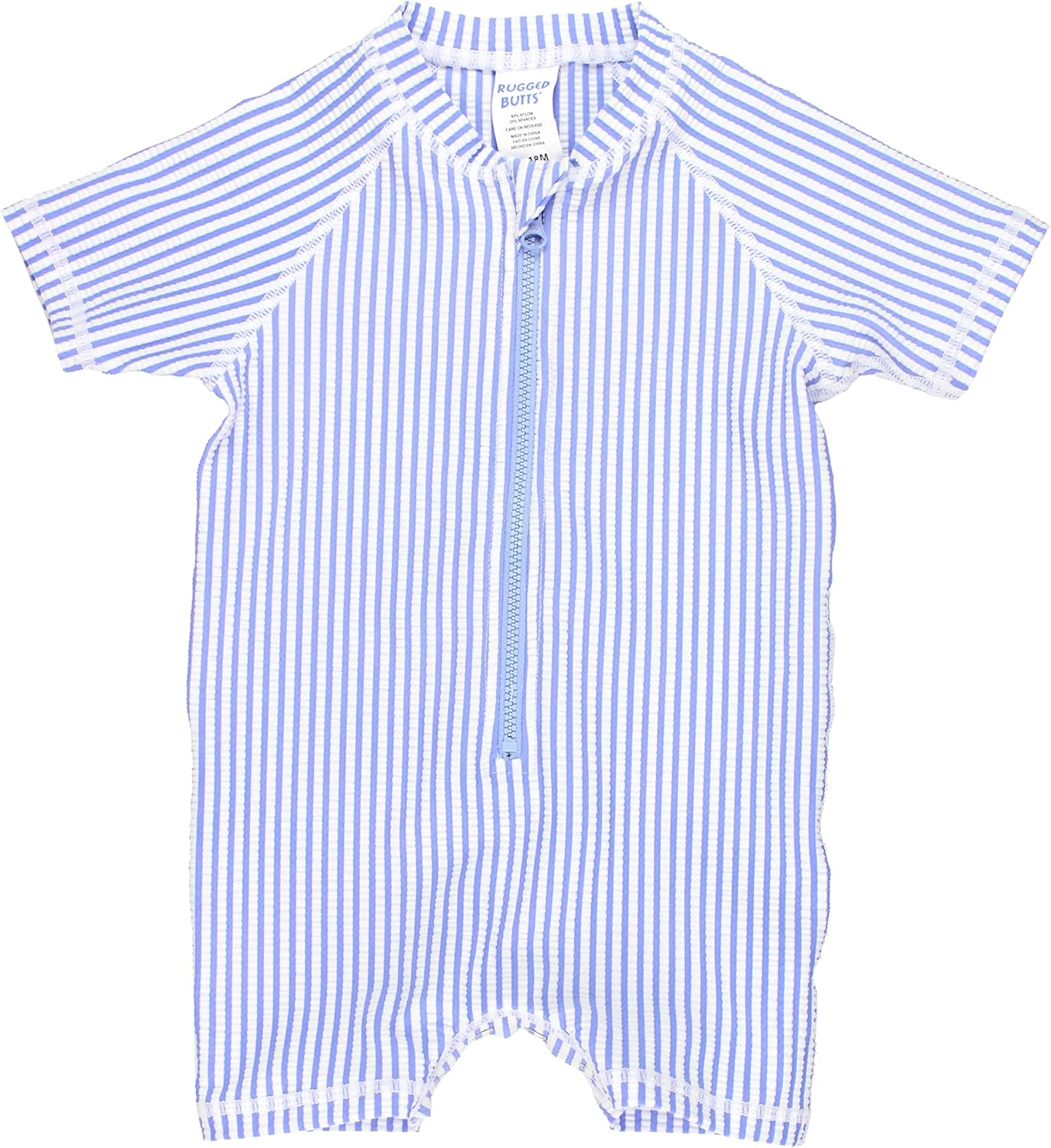 RUGGEDBUTTS Baby/Toddler Boy Swimsuit, One Piece Zipper Rash Guard Sunsuit with UPF 50+ Sun Protection