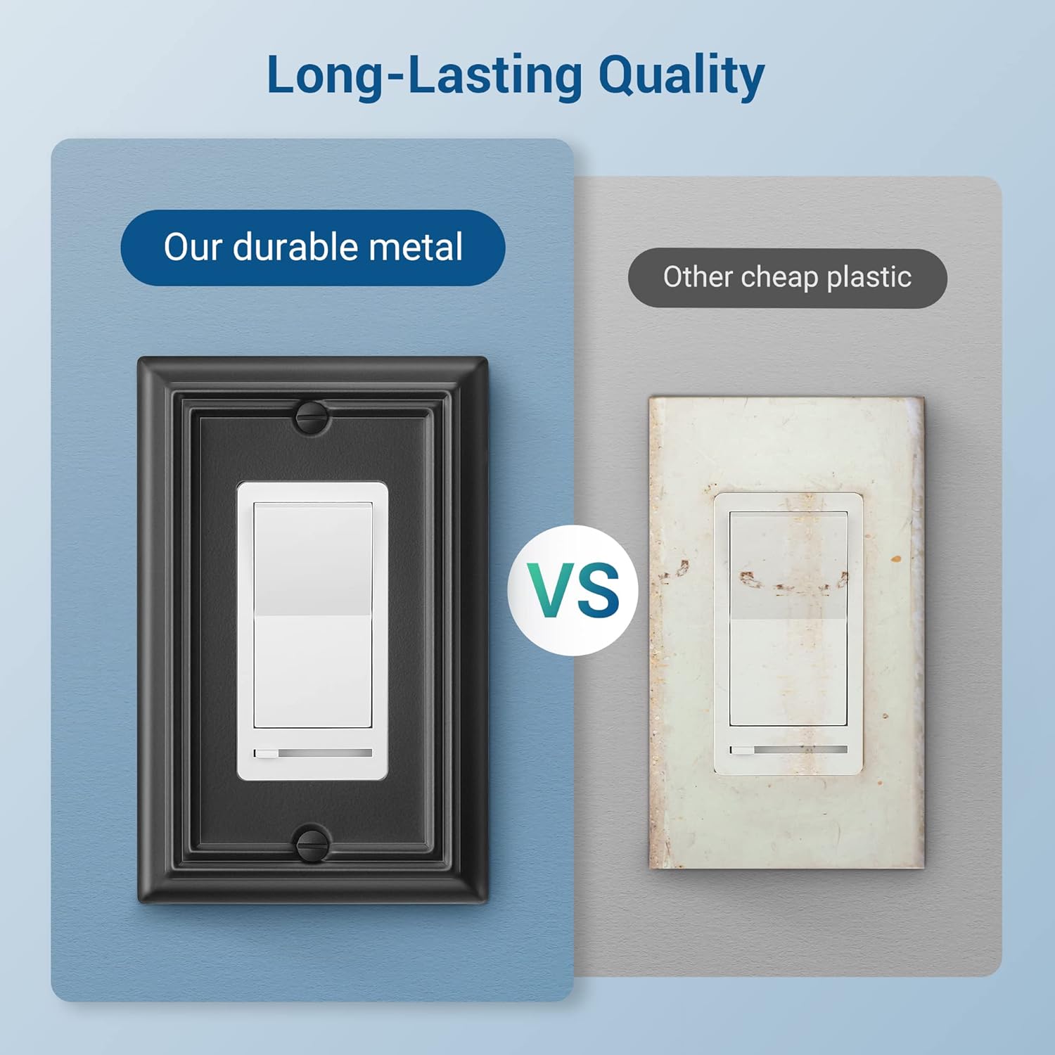- 【Wide Application】The metal decorative wall plates match in various formats, can be widely used in dimmer, toggle switch, outlet receptacle, GFCI outlets etc.