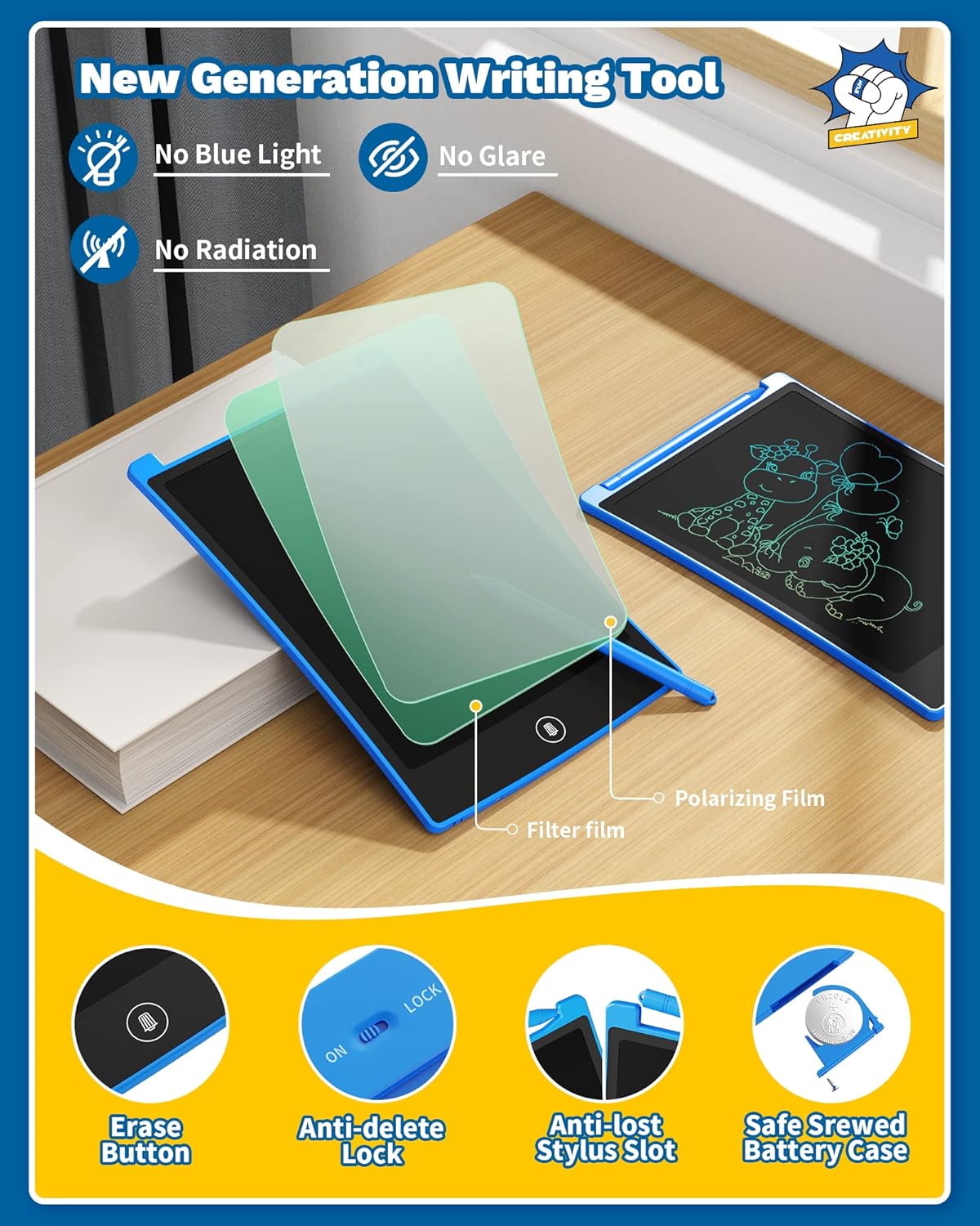 - Eye-Friendly: Say goodbye to blue light and glare with TEKFUN's LCD screen. Your child can draw for hours without straining their eyes, making it a great electronic alternative for preventing visual impairment.