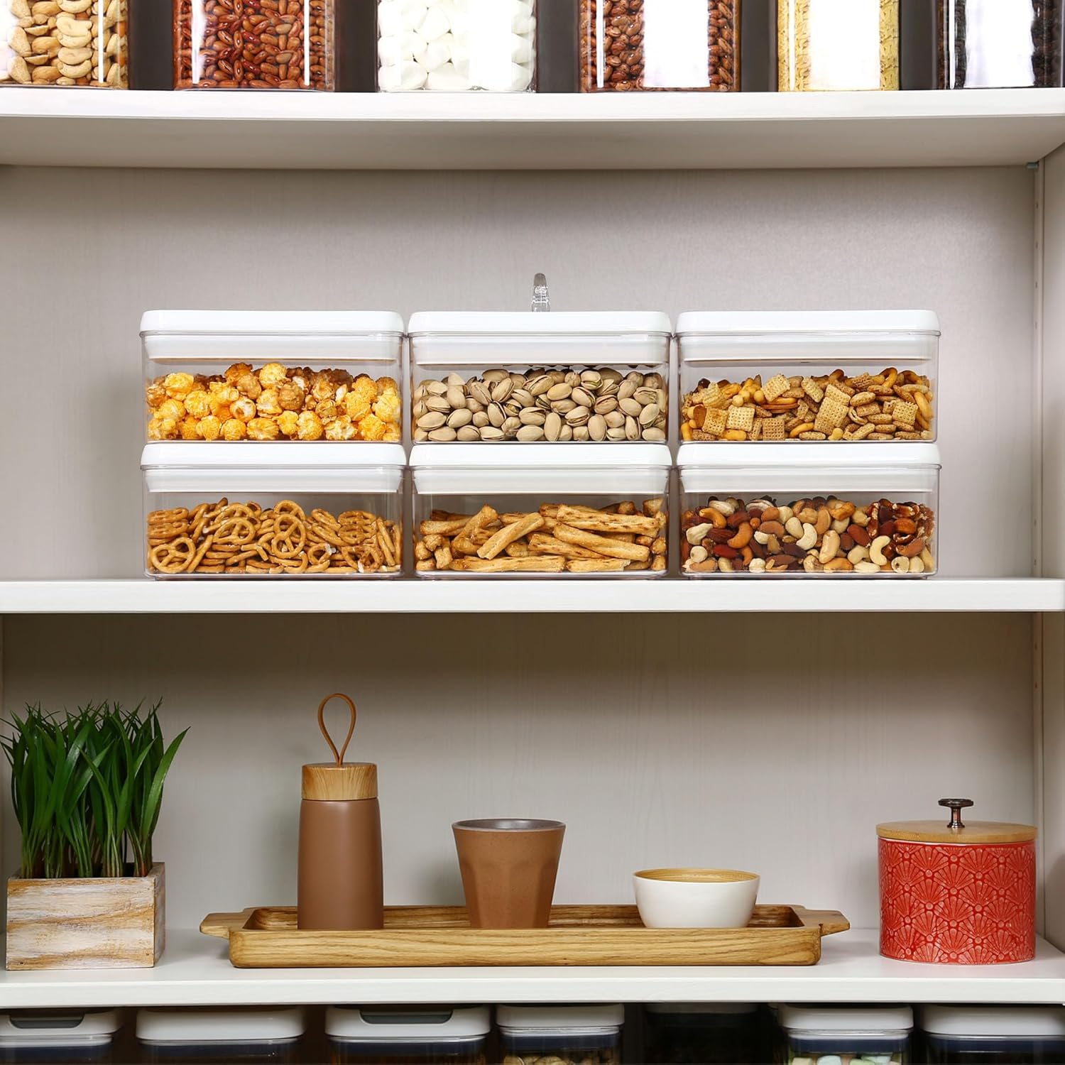 Felli Flip Tite Food Storage Container with Lid 4” RECTANGLE Airtight Ring Flip Lock Top, Stackable Acrylic Canister Set for Kitchen Fridge Pantry Organizer, Veggie Fruit Tea Bag Snack (1.1 qt)
