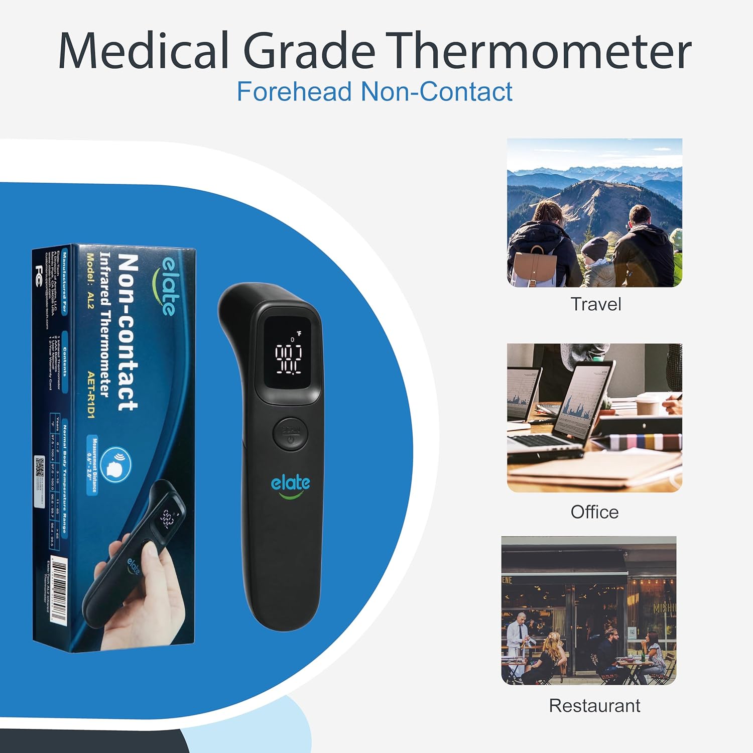 Elate Non-Contact Forehead Thermometer for Adults and Kids, No-Touch Digital Baby Thermometer for Infants/Newborns, Medical Grade, FSA HSA Eligible, Touchless Temporal Thermometer for Fever