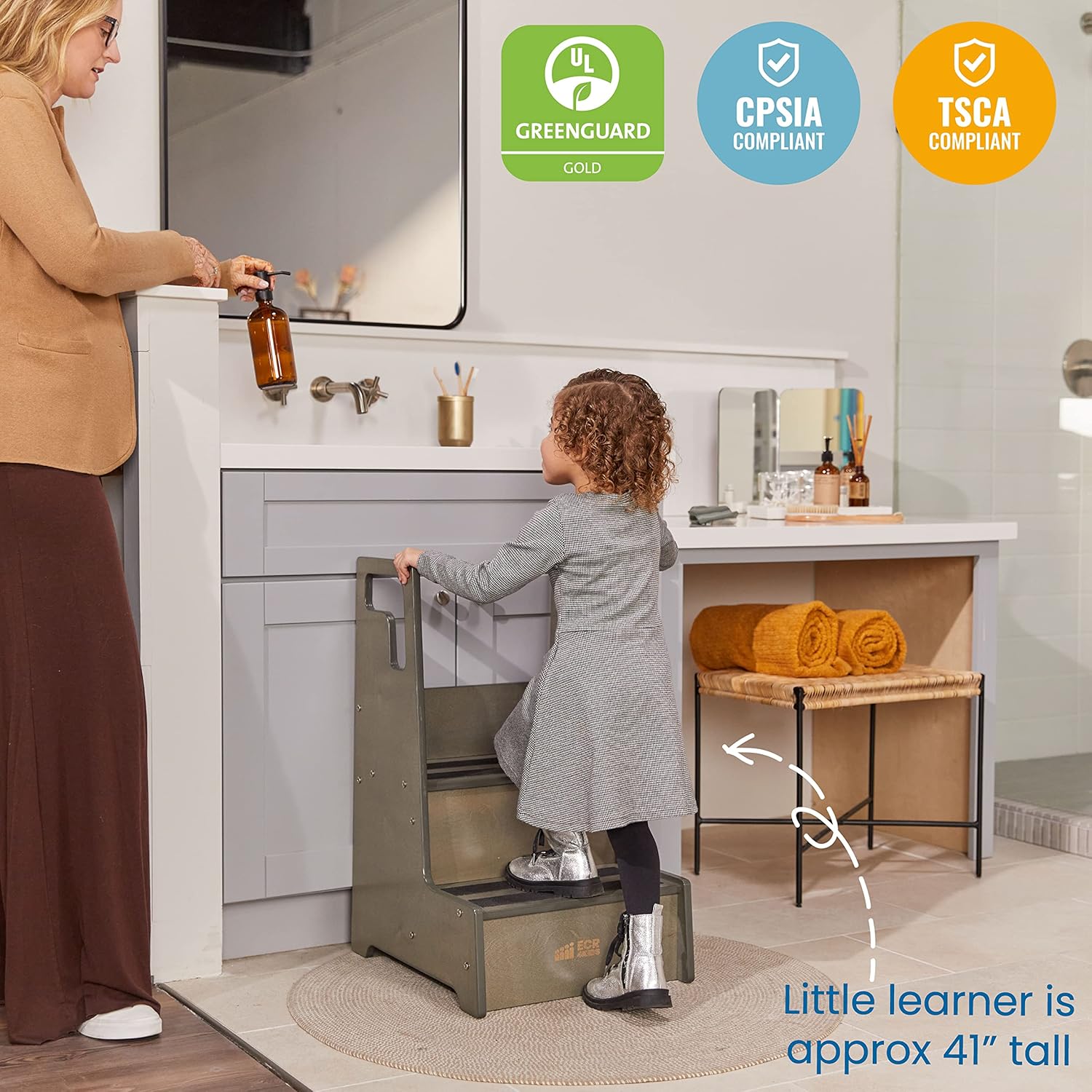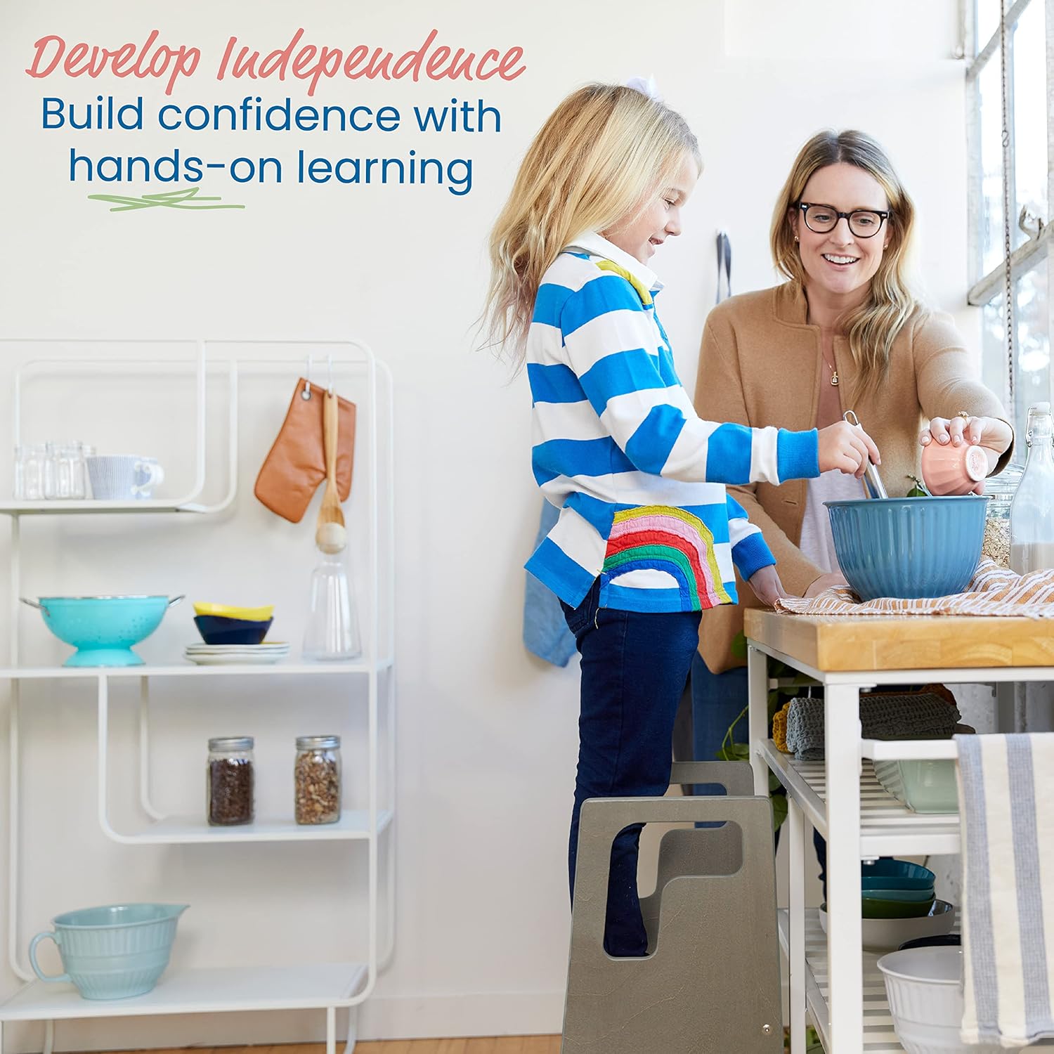 - Two-Step Stool: Countertop-height step stool designed for little helpers to grow confidence as they cook, wash hands, and brush teeth in a home, preschool, or daycare