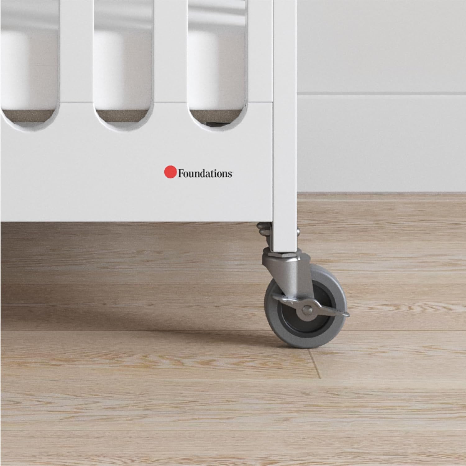 Foundations Boutique Folding Mini Baby Crib - Compact, Portable, Wooden Hotel Crib, Foldable Compact Cribs for Baby & Toddlers - Includes 3" Foam Mattress - White
