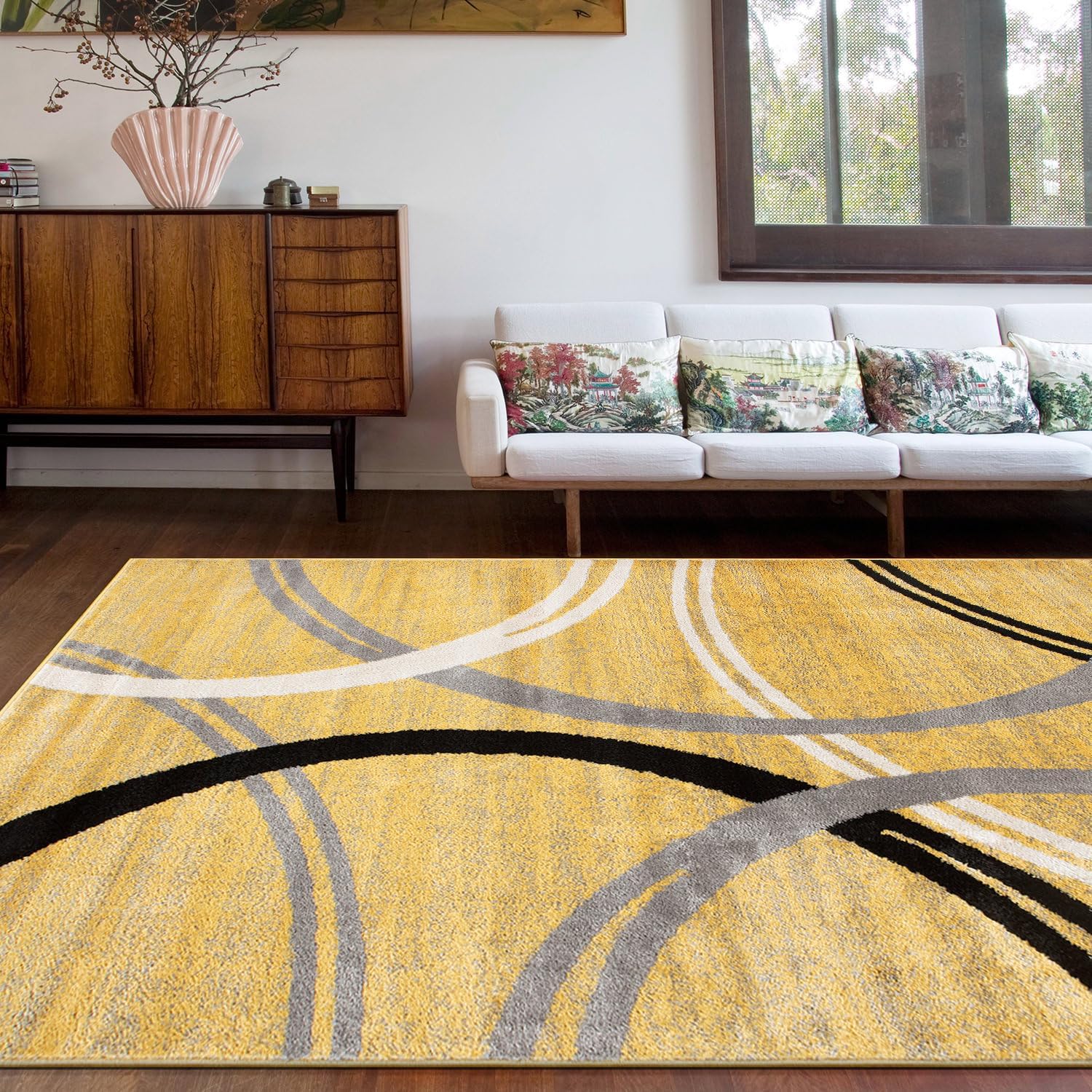 Rugshop Modern Wavy Circles Design Area Rug 10' x 14' Yellow