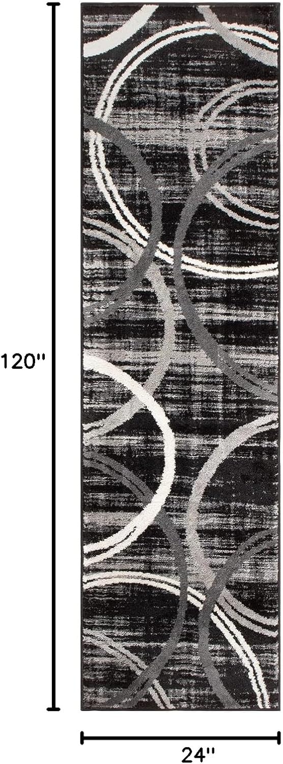 Rugshop Modern Wavy Circles Design Runner Rug 2' x 10' Black