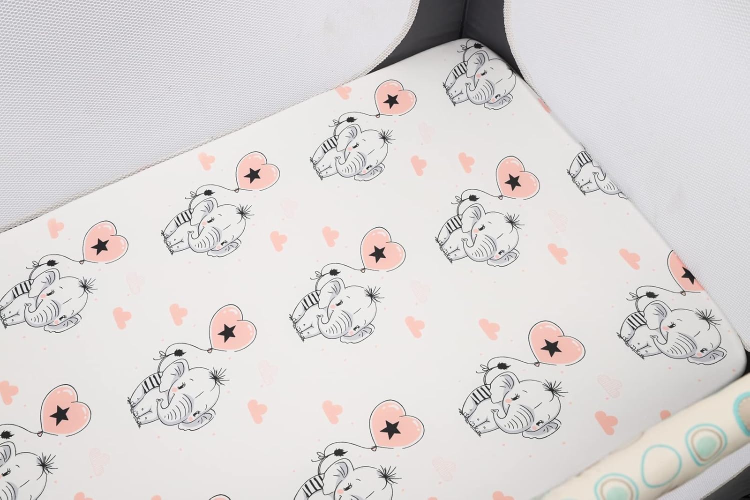 Pack n Play Sheet Stretchy Fitted Portable Mini Crib Sheets Set 3 Pack,Playard Sheets Convertible Playard Mattress Cover,Ultra Soft Jersey Material,Flamingo Elephant & Lion