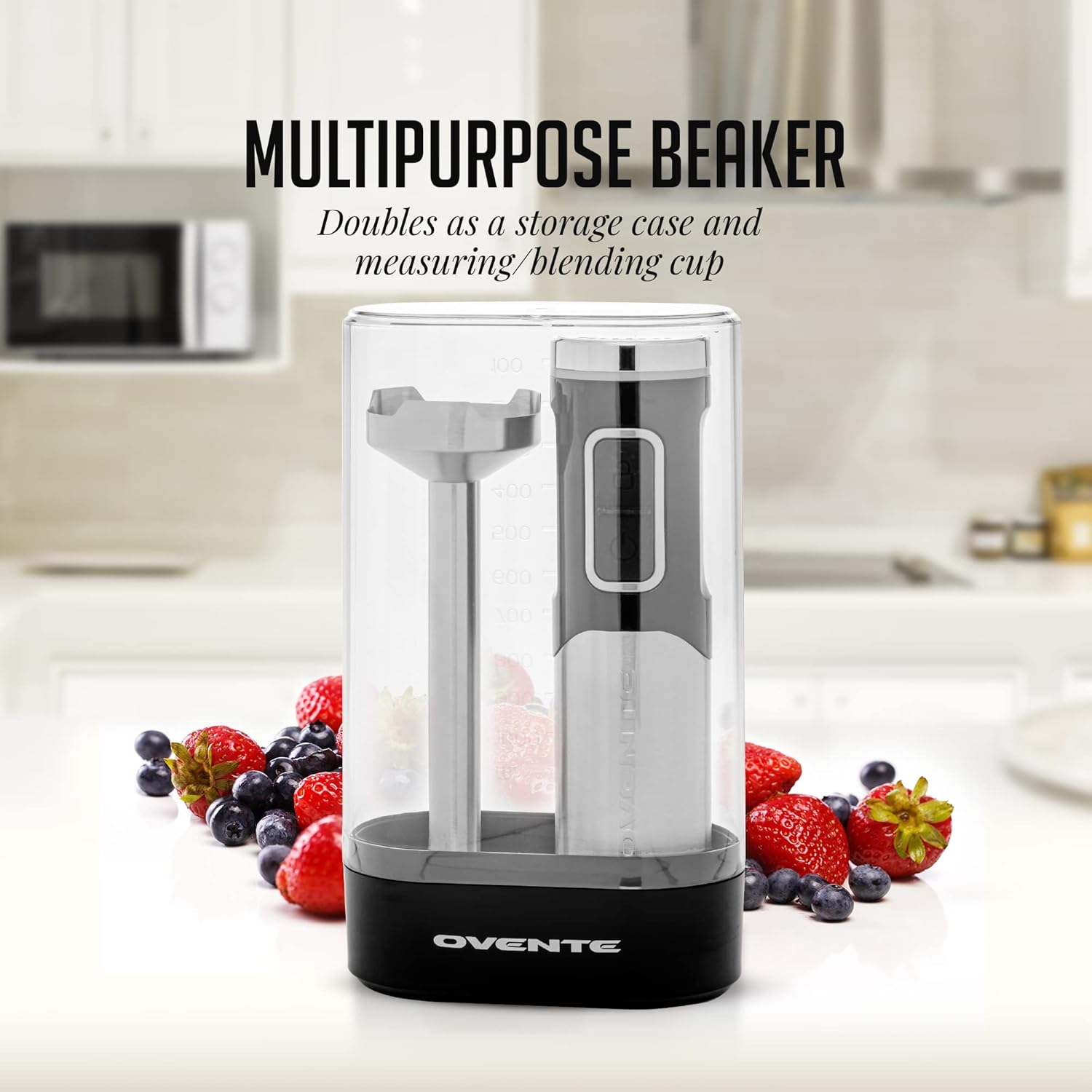 OVENTE Cordless Immersion Hand Blender, Rechargeable Handheld Portable Stick Mixer with 8 Mixing Speed Option, One-Touch Control and Stainless Steel Blades for Smoothies, Shakes or Soups, Black HR981B