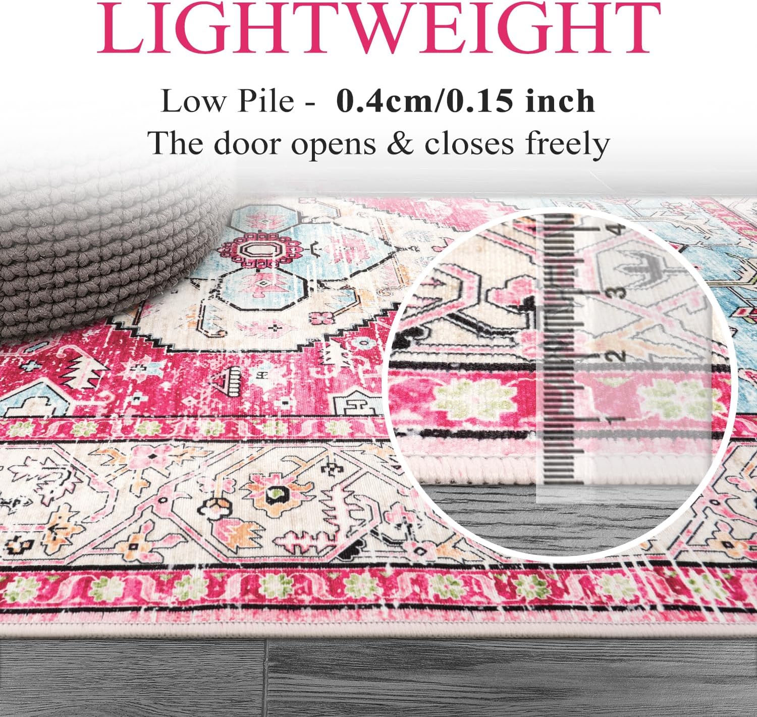 - Functional Lightweight Rug - Lahome ultra-thin rugs are made with everyday use in mind and high-traffic areas. 0.15 inches thickness allows for convenient placement in hallway, kitchen, entryway and underneath furniture. The door opens and closes freely