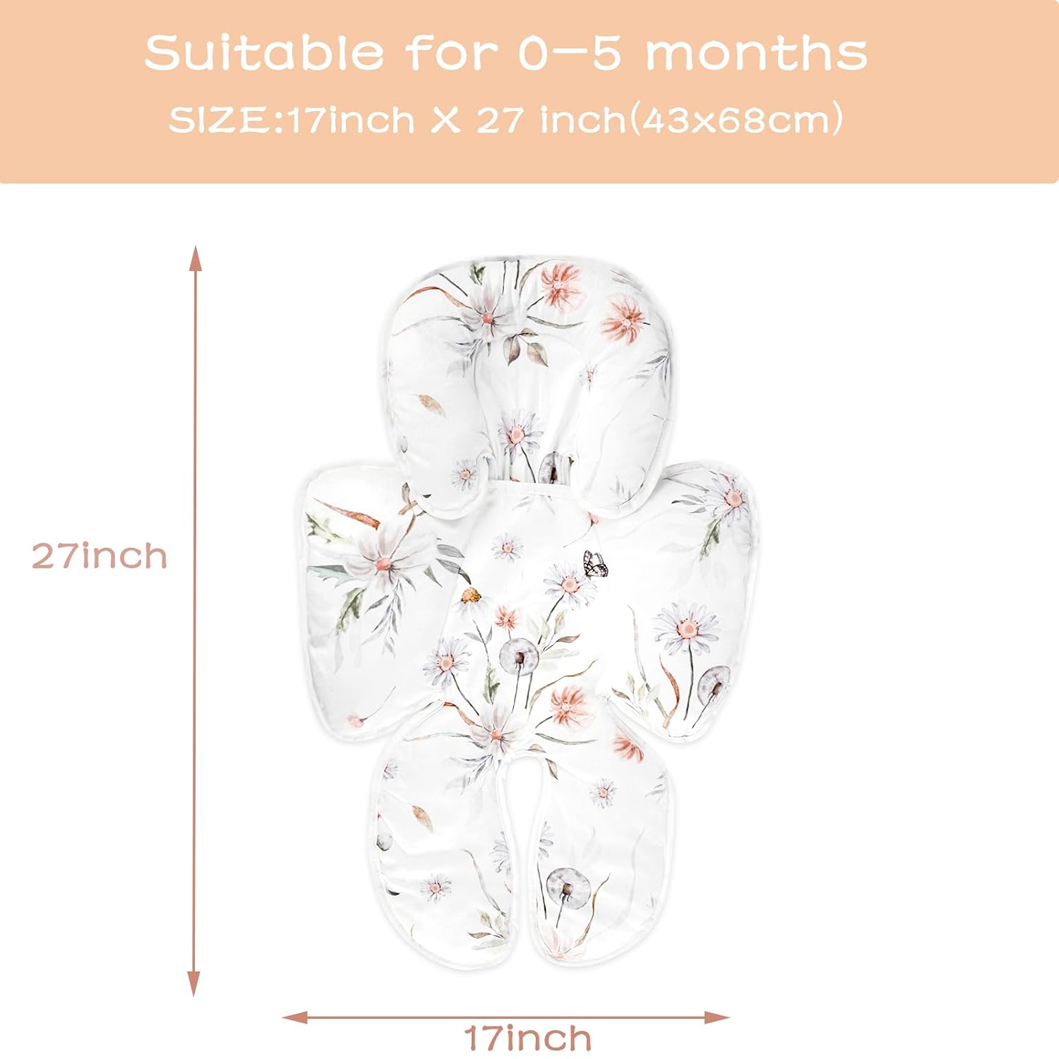 2 in 1 Infant Car Seat Insert, Car Seat Head Support Baby Girls Boys, Soft Newborn Carseat Insert Cushion, Perfect for Carseats, Strollers, Swings (White Flower)