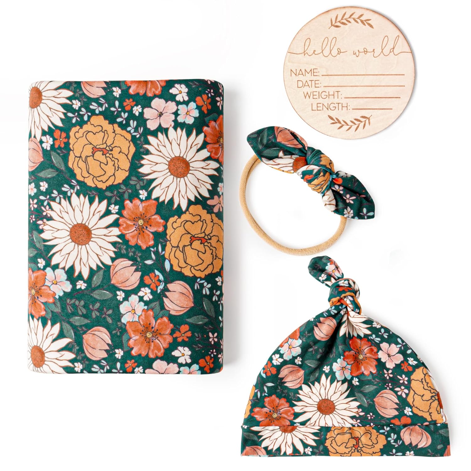 - Multi-purpose: The newborn receiving blanket headband set includes: 1PCS Blanket , 1PCS Beanie/Hat, 1 PCS Baby girl bows, 1 PCS Birth Announcement Card, it can be used as swaddling blanket, nursing stroller cover, burp cloth, car seat cover , newborn hospital outfit or a gift for baby shower