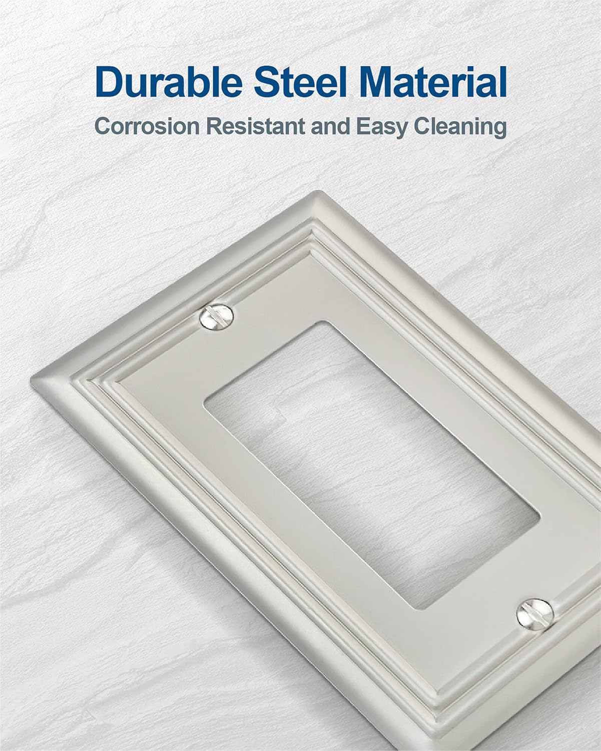 - 【Durable Steel】Made from durable metal, the satin nickel finish cover protects electric outlet cover from abrasion and impact