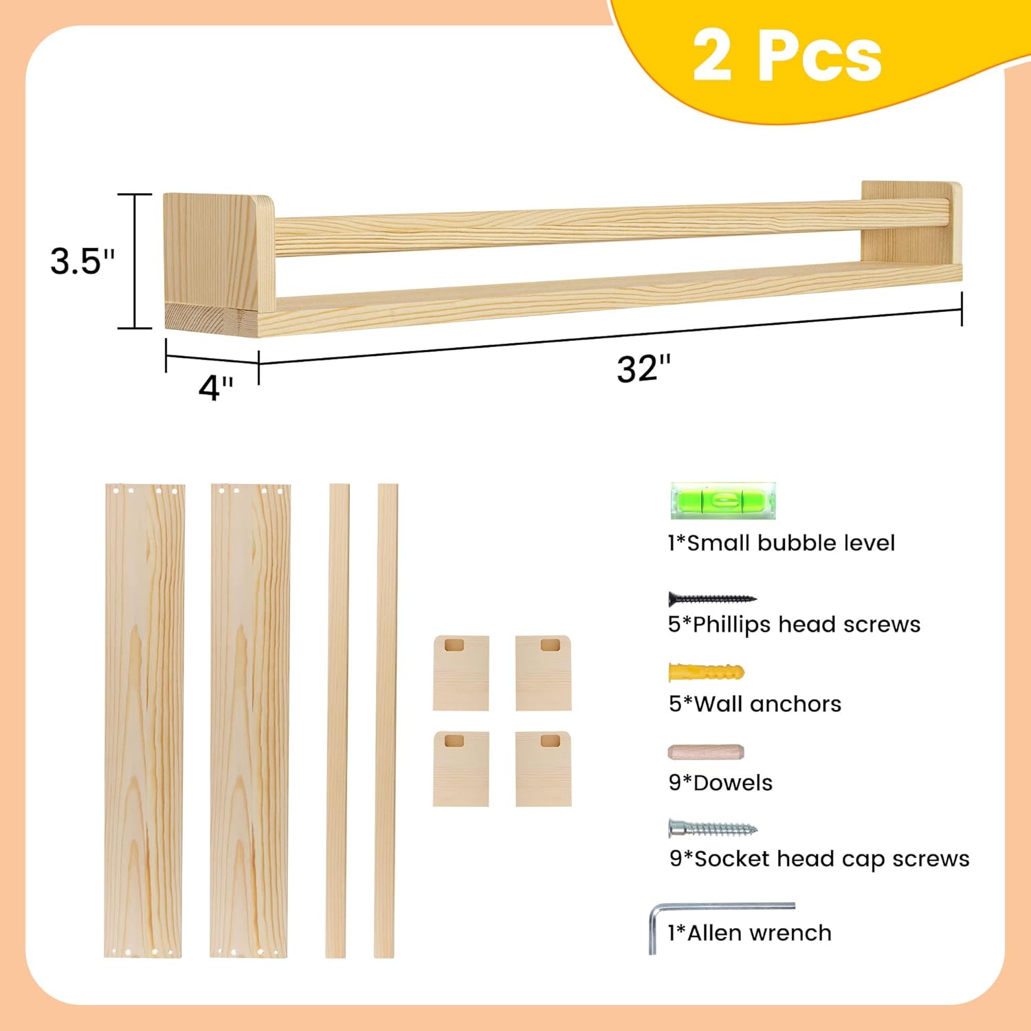 - Durable & High-Quality: Made of solid pine wood, these floating shelves are built to last. They'll provide a stylish and practical storage solution for years to come, making them an excellent addition to nursery decor and any room throughout your home