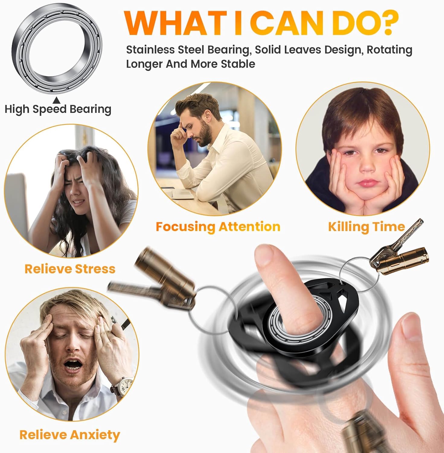 - ߷ RELIEVE STRESS AND ANXIETY - keychain spinner for finger help you with sensory issues. Keep spinning and flipping your keys chain non-stop, it can relieve your anxiety relief. Our key chain spinner is a perfect fidget toy whether you fidget or not!